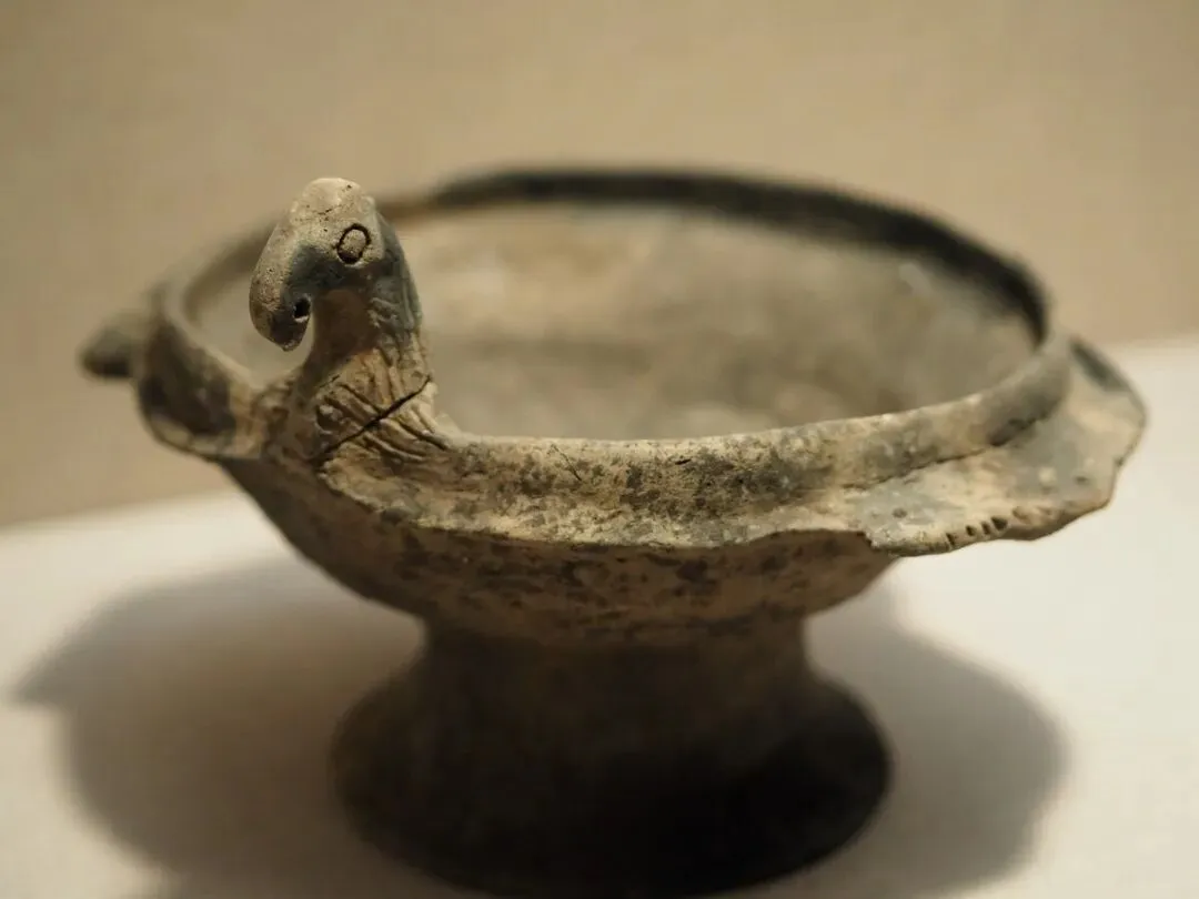 河姆渡文化鹰形陶豆:以鹰为造型的陶豆,体现了新石器时代先民的审美和工艺水平。