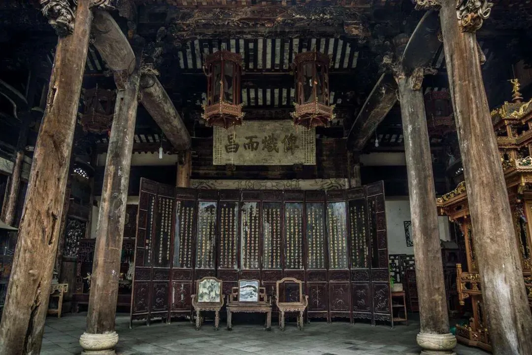 秦氏支祠:建于1925年,以其精美的朱金木雕、砖雕和石雕闻名,是宁波民居建筑的典范。