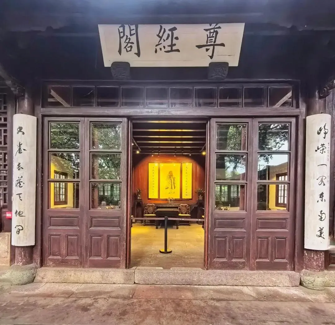 尊经阁:原在宁波府学内,后迁入,内藏御赐书籍和儒家经典。