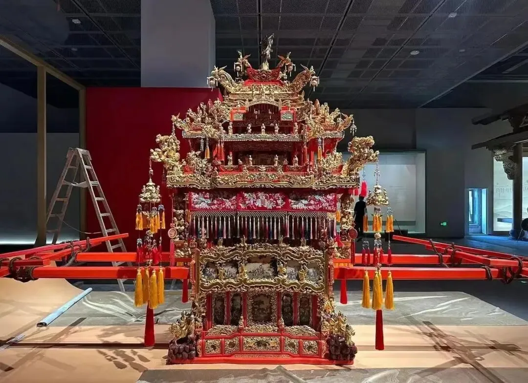 "万工轿":这顶花轿是宁波博物馆非常引人注目的展品,是宁波传统朱金木雕的代表作。轿高3米,要8个大汉才能抬起。轿上共雕绘了300多个姿态各异的人物,装饰极其华丽。据说制作它耗费了一个工匠一万个工作日,故称"万工轿",是宁波民俗文化的生动体现。