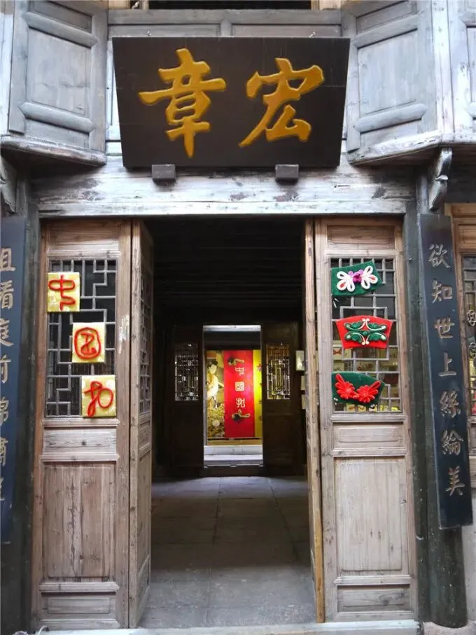 宏章绸庄:二楼以绸缎制作1000余个“中国扣”,涵盖600余种传统盘扣样式,为国内古城古镇首创,兼具艺术与历史价值。
