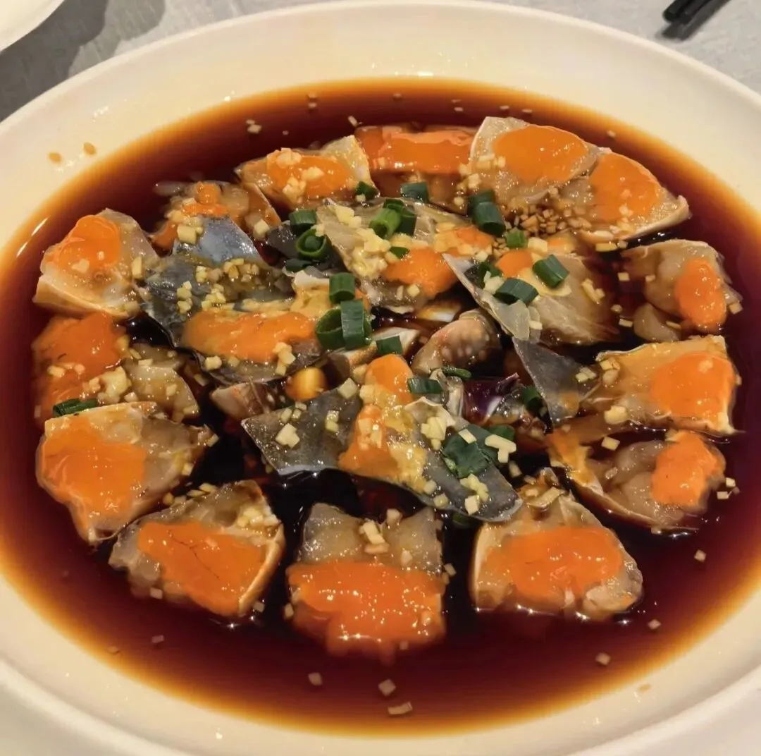 1、红膏呛蟹:宁波菜的代表之一,蟹肉鲜甜,是当地人宴客的"硬菜"。