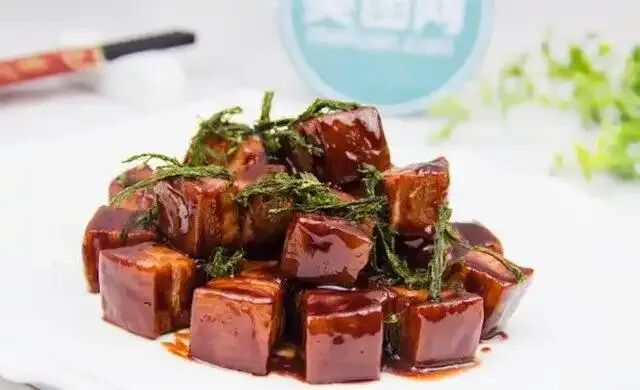 12、苔菜小方烤:五花肉与苔菜粉慢炖,肉质酥烂,苔香浓郁,是宁波人餐桌上的“下饭神器”。