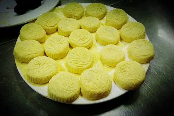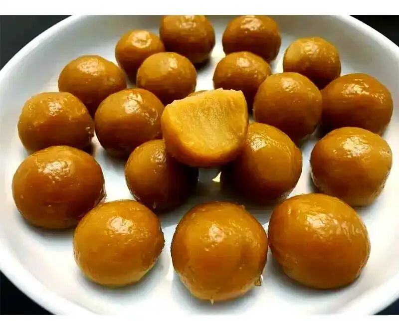 16、龙凤金团:糯米粉包裹豆沙或芝麻馅,表面印龙凤浮雕,寓意吉祥,是婚庆场合的必备点心。