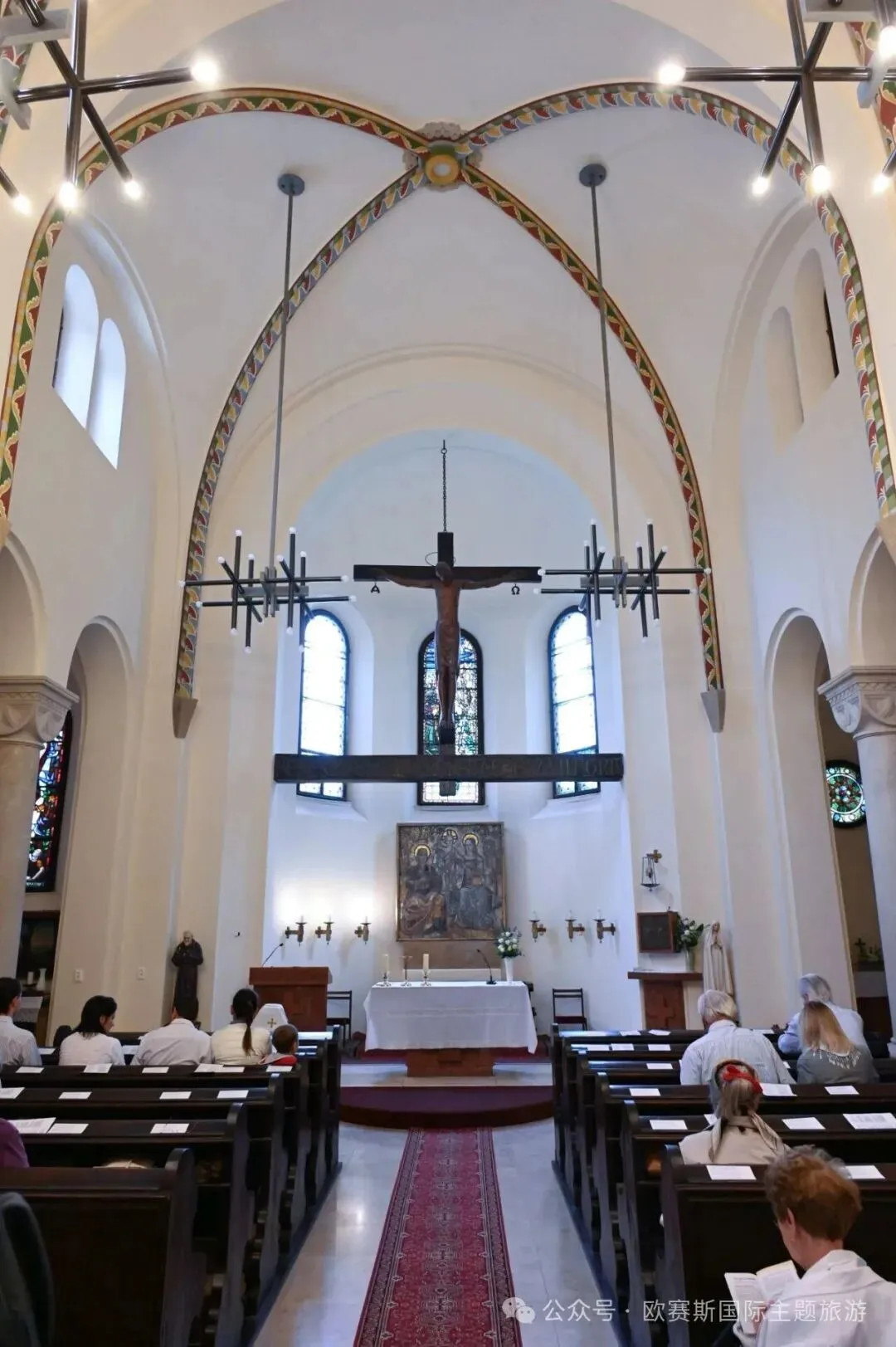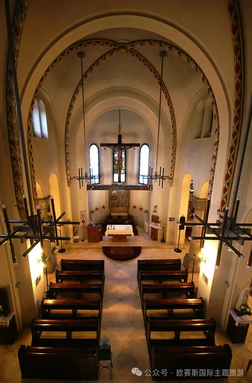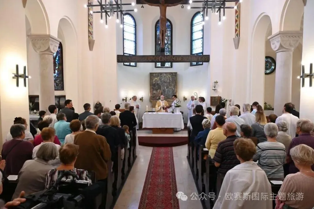 教堂内的苦路十四处以现代艺术风格重新演绎,将传统信仰与当代艺术巧妙融合。