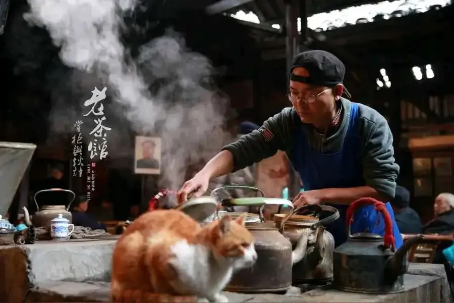 巷口茶馆的掌柜穿着粗布长衫,慢悠悠擦着白瓷茶杯,和游客唠起古镇的百年旧事,语气平和,像邻家长辈;