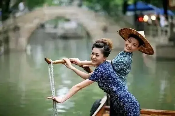 摇橹的船娘裹着蓝印花布头巾,木桨轻划水面,哼着软糯的吴语渔歌,偶遇游客便笑着招呼“下船尝尝本地糕点哦”,一句话便融进小桥流水里;