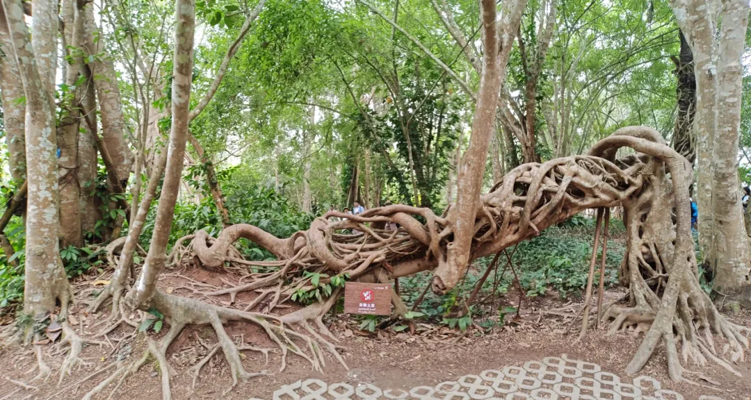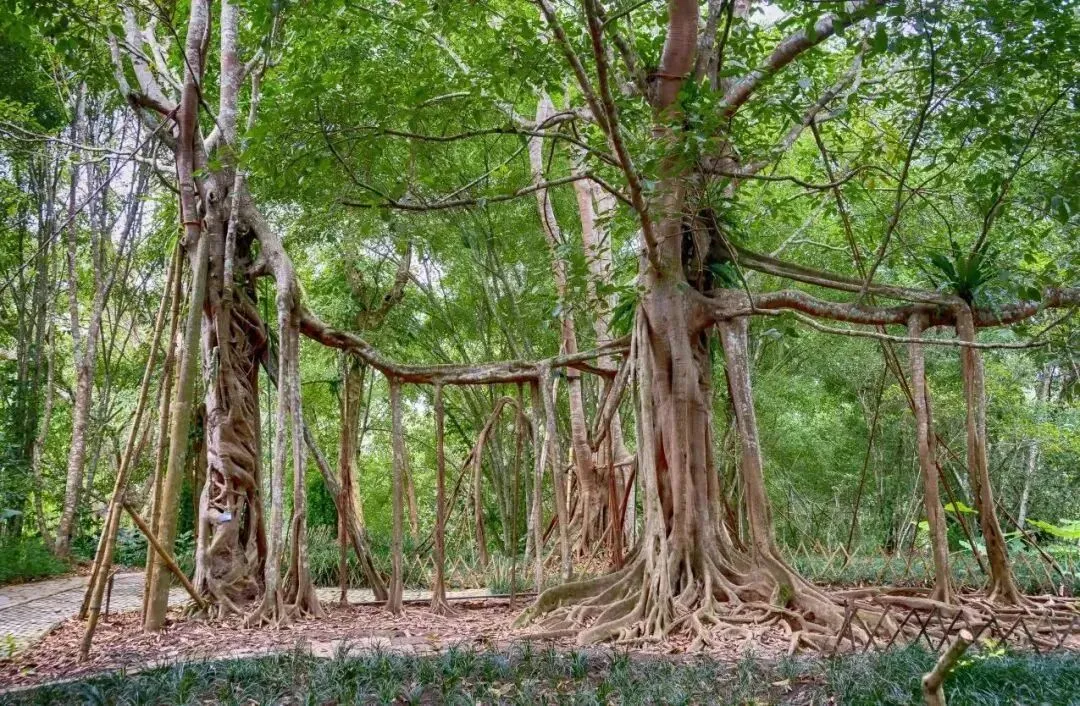 榕树园:独木成林奇观,榕树气生根交织成网,展现植物生存的智慧。