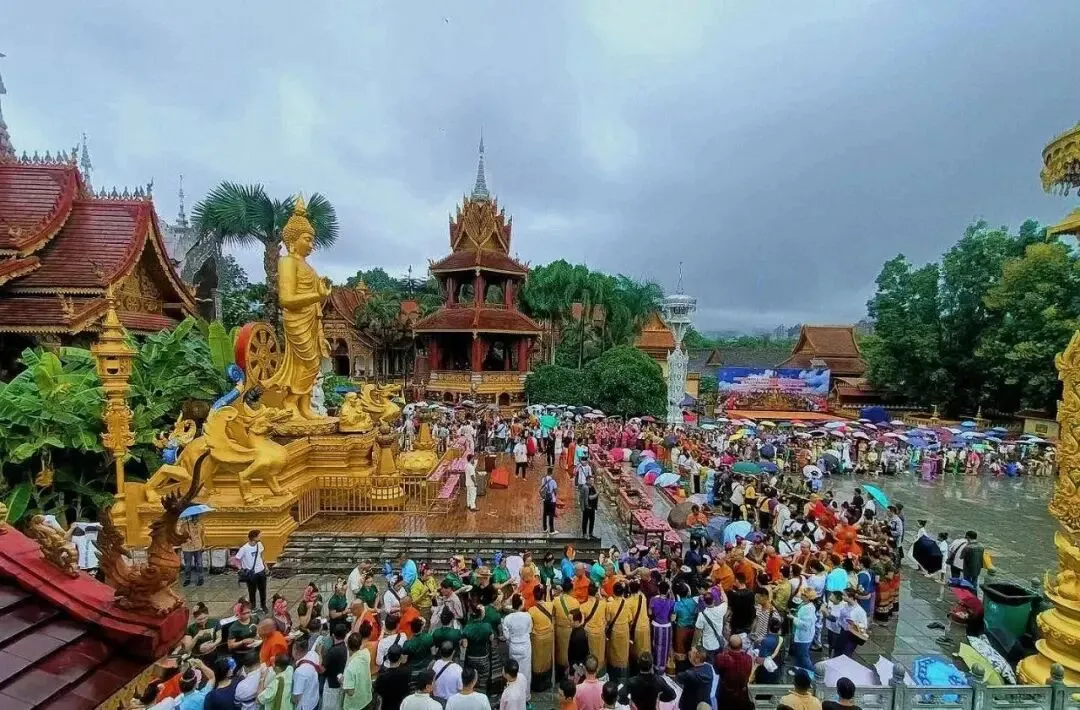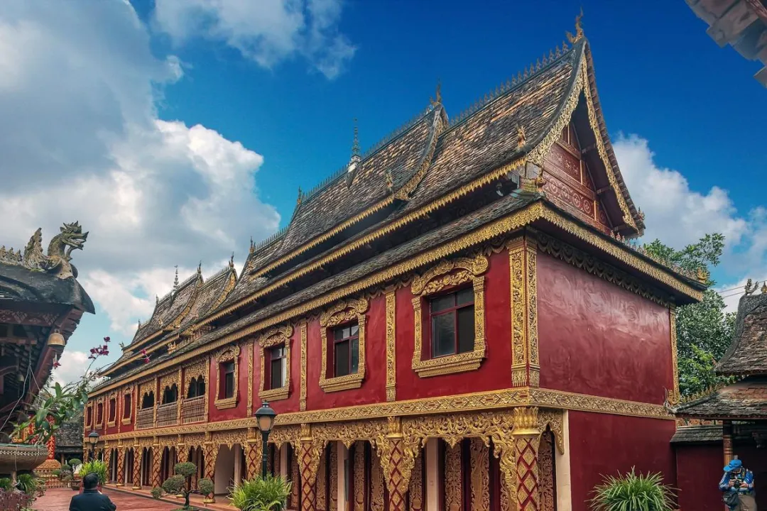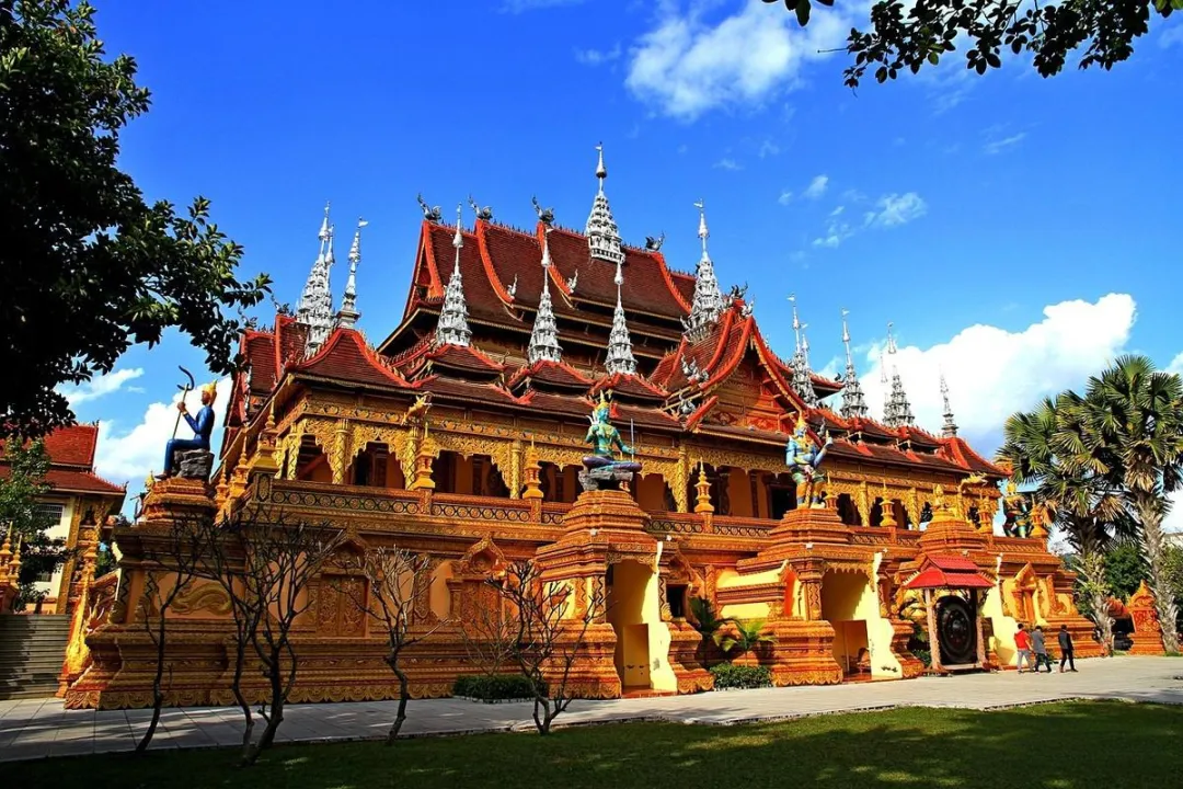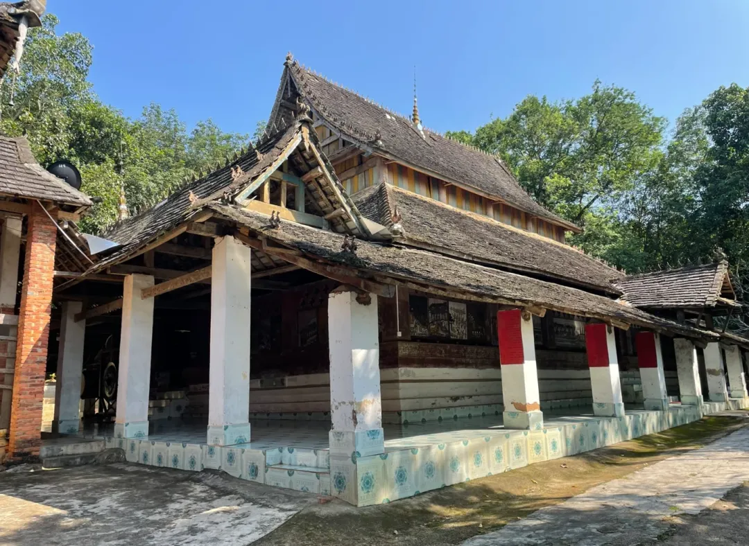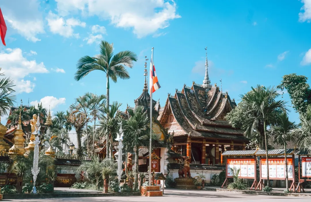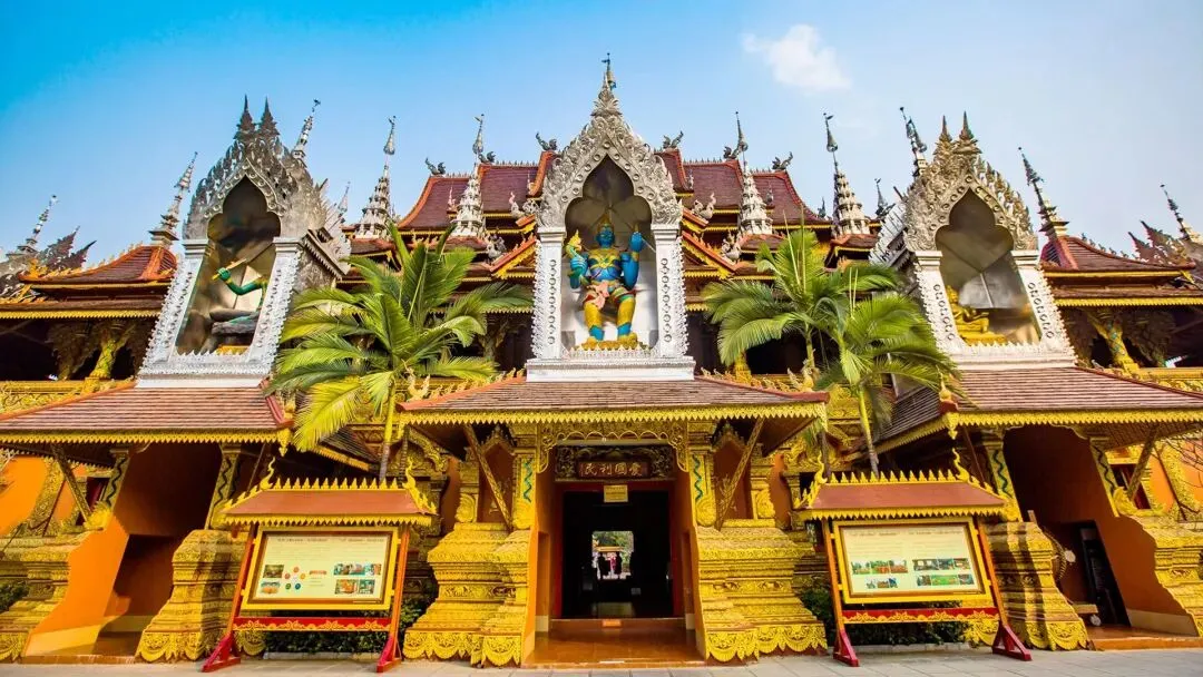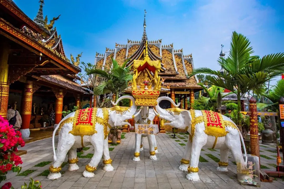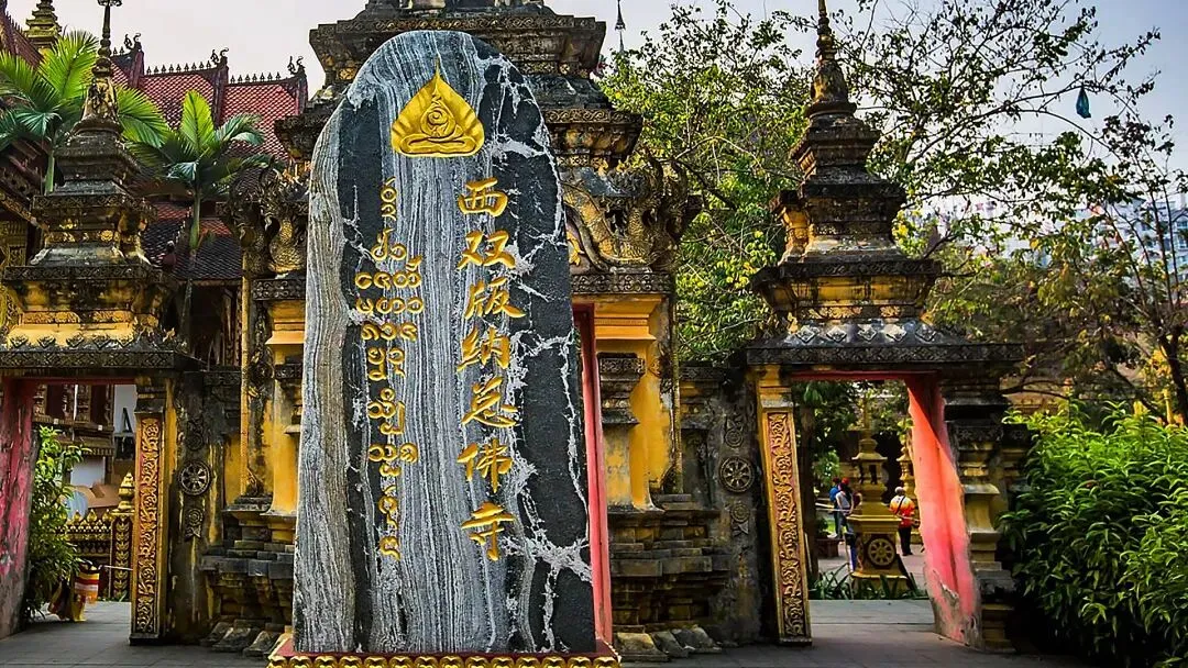 总佛寺:1400年历史,融合东南亚佛教特色与傣族传统元素,金箔沉淀包浆,瓦当刻贝叶经文。
