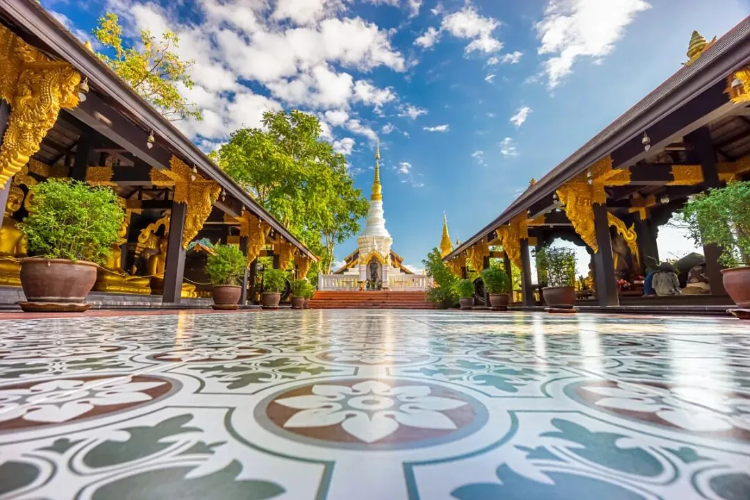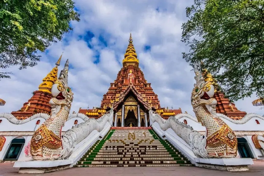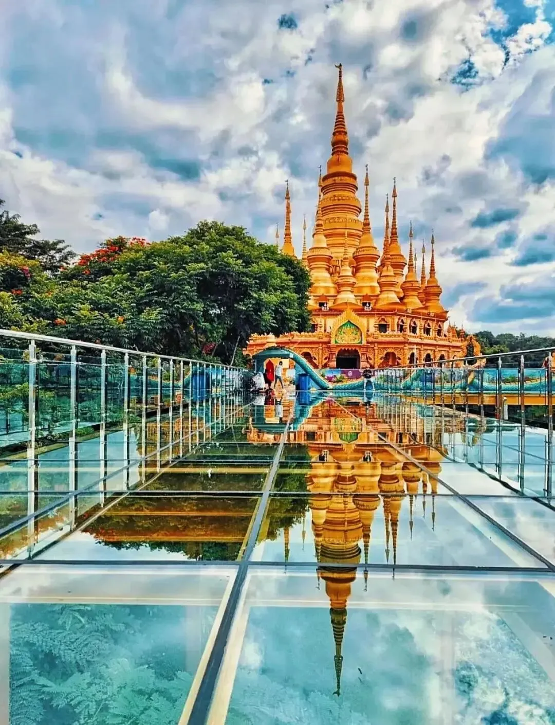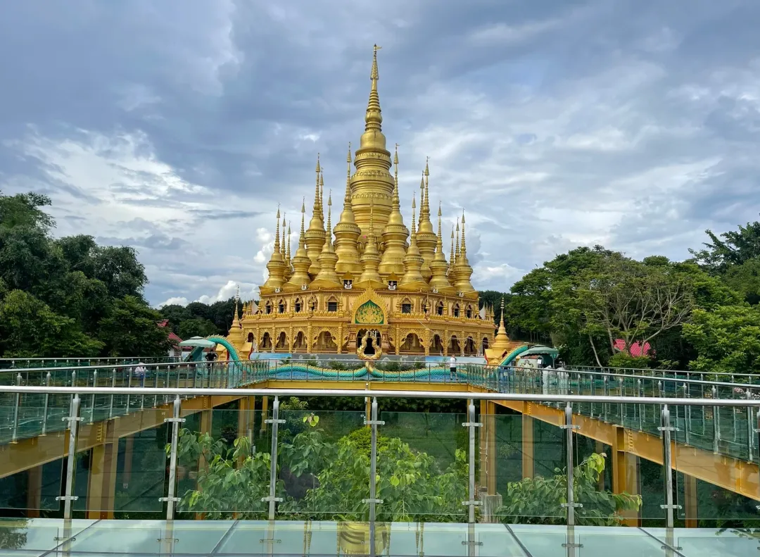 特色:傣泰建筑风格的标志性景点,塔高66.6米,寓意“一江连六国”,夜晚灯光璀璨如梦幻世界。