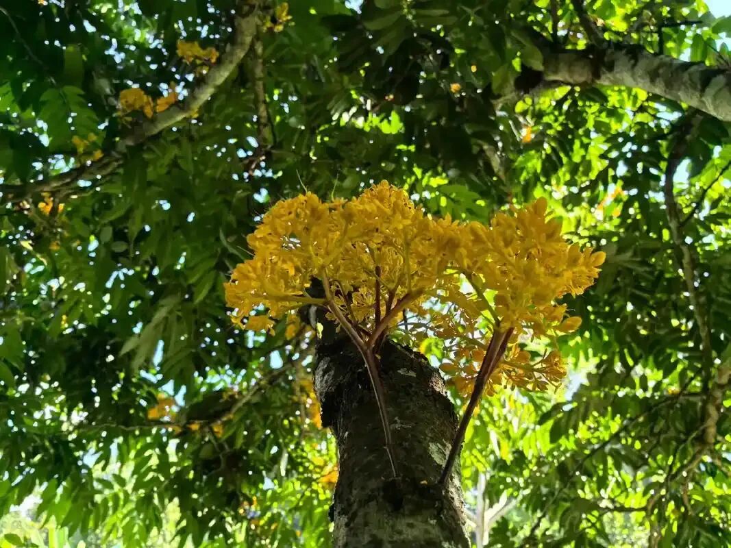 泰国无忧花:金灿灿的杠上开花,花朵簇生于树干上,即老茎生花,盛开时金黄满树,非常壮观。