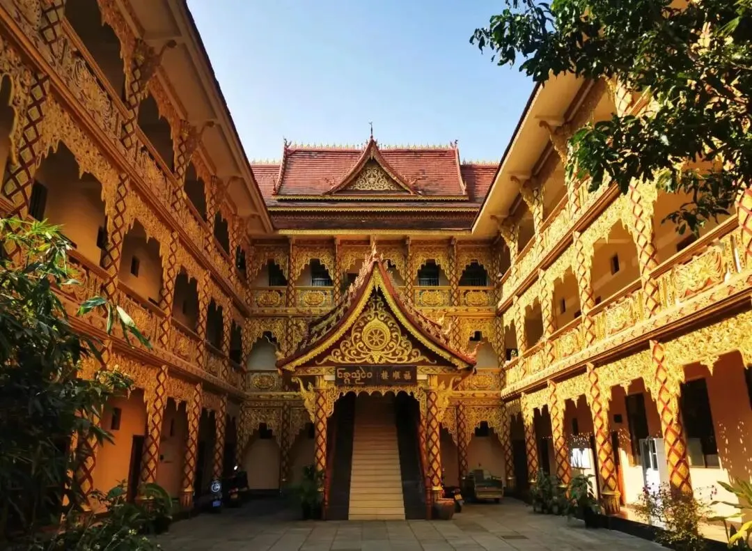 傣王行宫:金碧辉煌的傣族王室建筑,内部装饰精美,展示傣族太阳崇拜与祈福密码的金水漏印画。