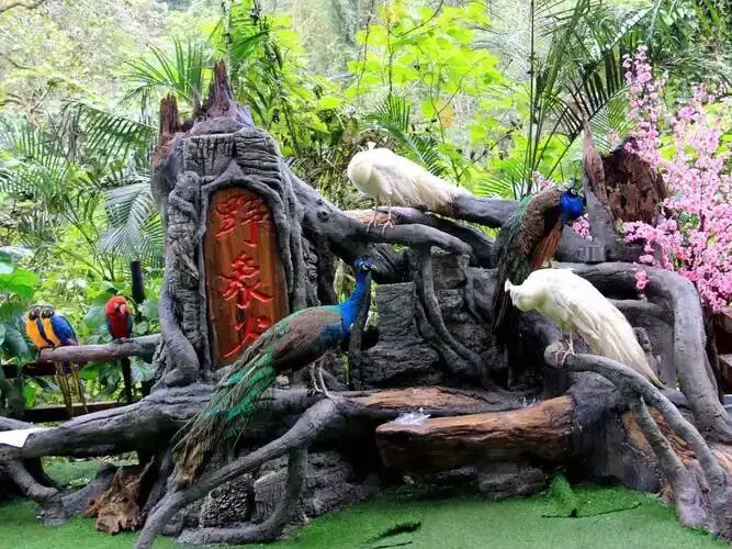 蝴蝶养殖园与百鸟园:人工繁育的蝴蝶群飞舞于园内,百鸟园展示绿孔雀、犀鸟等珍稀鸟类,形成“空中花园”般的生态景观。