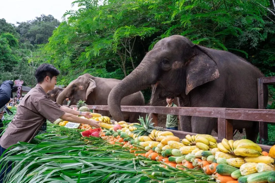 雨林牧象:游客可跟随象群漫步雨林,参与喂食、清洁等互动,深入了解亚洲象生活习性。