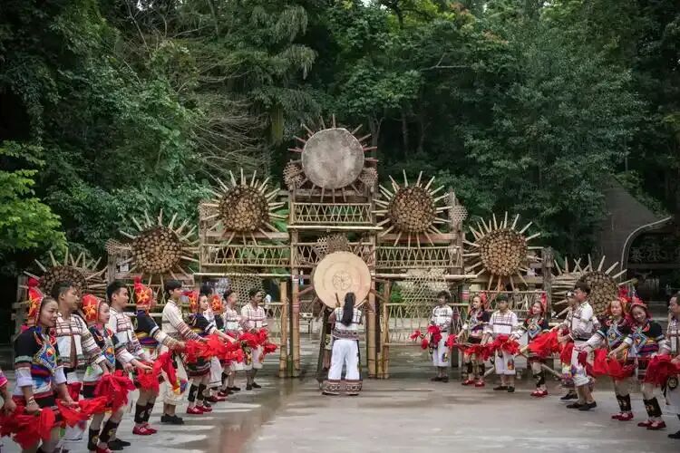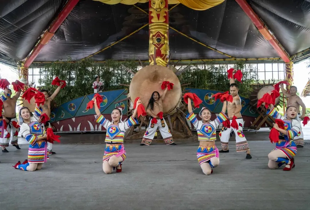 非遗大鼓舞表演:在山顶观景台可以欣赏到震撼的基诺族歌舞表演,还可以跟着学习几段舞蹈。