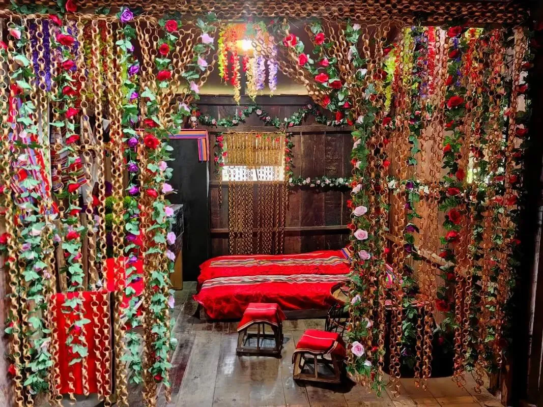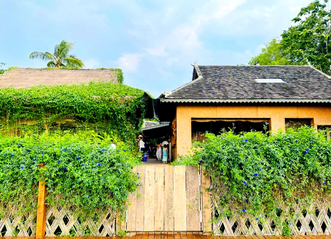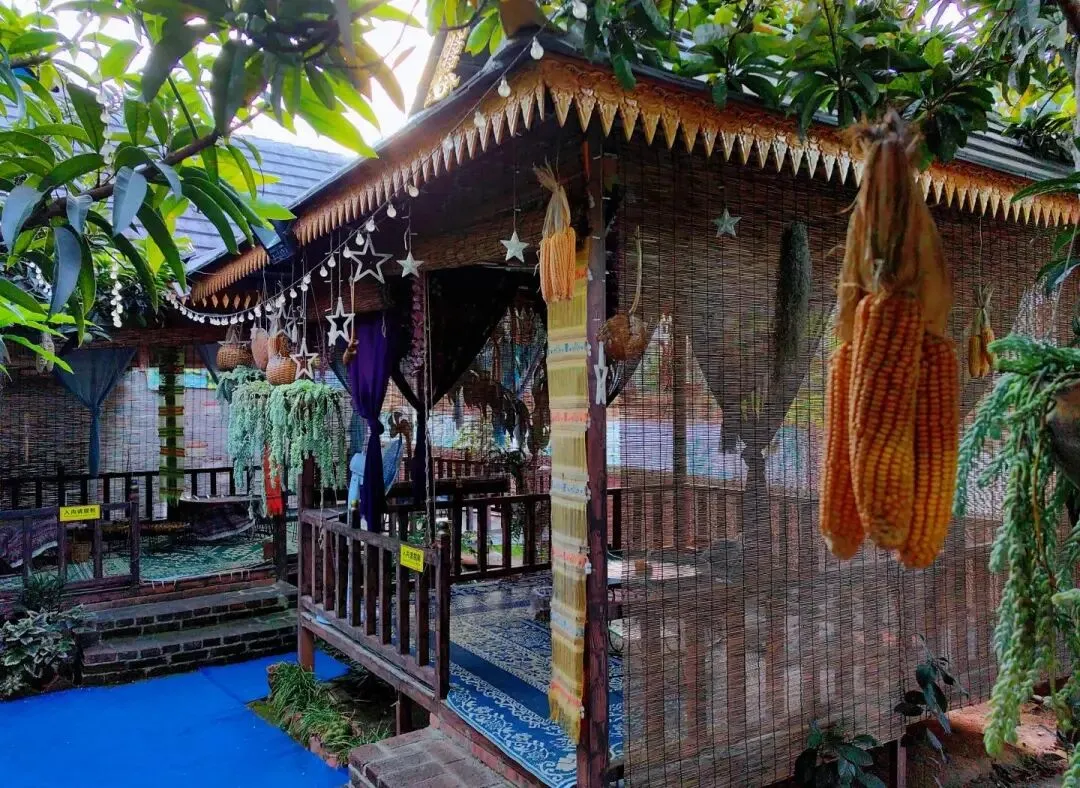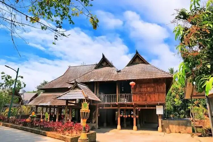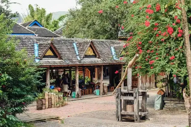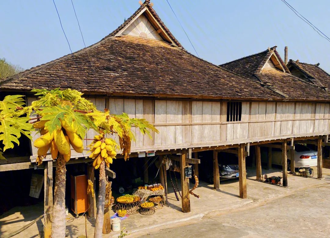 傣族民居:村里的民居和院落都非常漂亮,每户都种满了花花草草。建筑的一层是架空的,可以走进去参观。村民会在下面喝茶休息或晾晒储物,有的地方还布置了介绍民居的展览。游客可以在此了解傣族的传统生活方式和建筑风格。