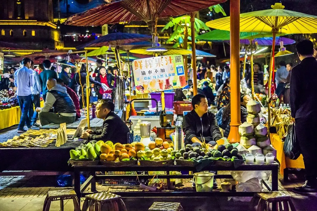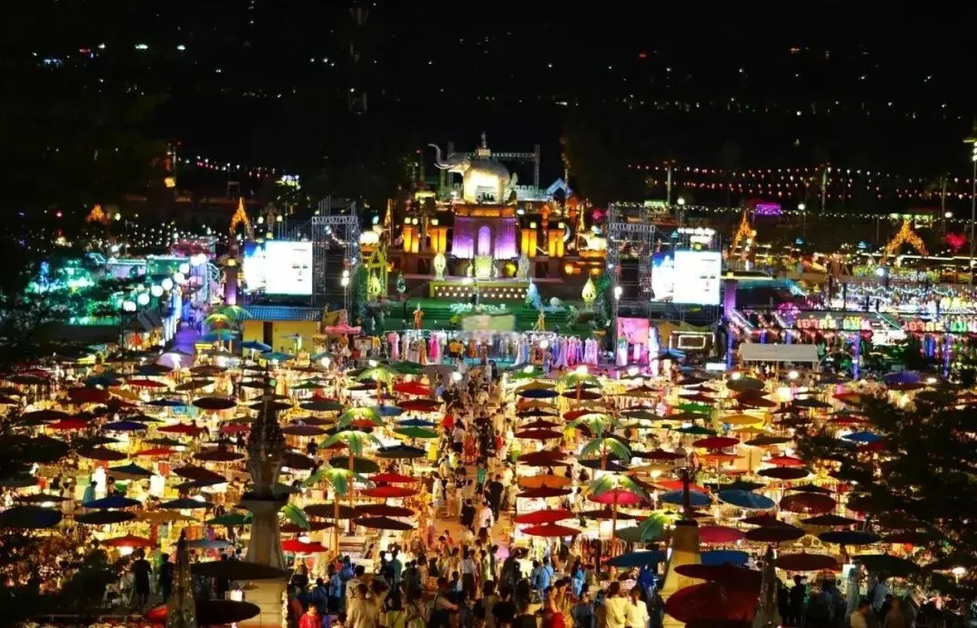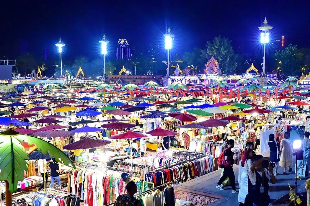 特色:亚洲最大的夜市之一,数千个摊位闪烁如星河,汇聚傣族服饰、手工艺品和东南亚美食。