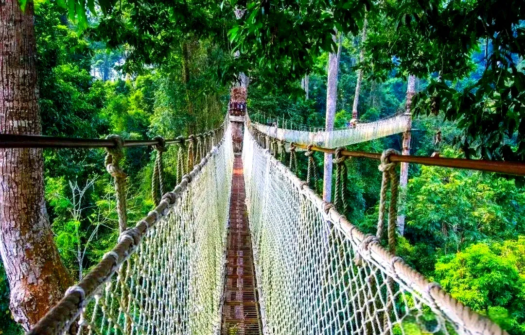 树冠走廊:架设在36米高空,全长500米,由钢索和木板构成,行走时摇晃感明显。俯瞰雨林全景,感受“云端漫步”的惊险与刺激,是景区最受欢迎的打卡点。