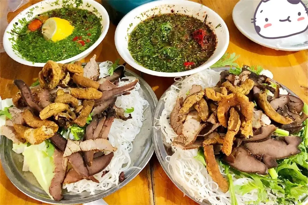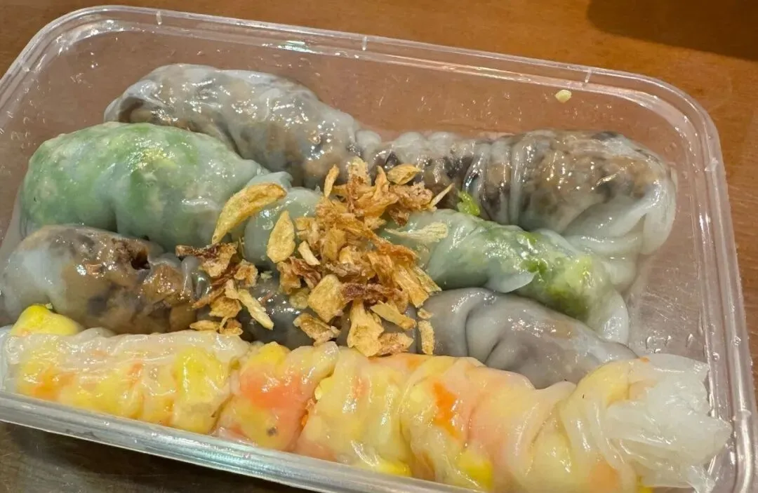 6、越南小卷粉:米皮包裹着不同的馅料,蘸着特制酱料吃。