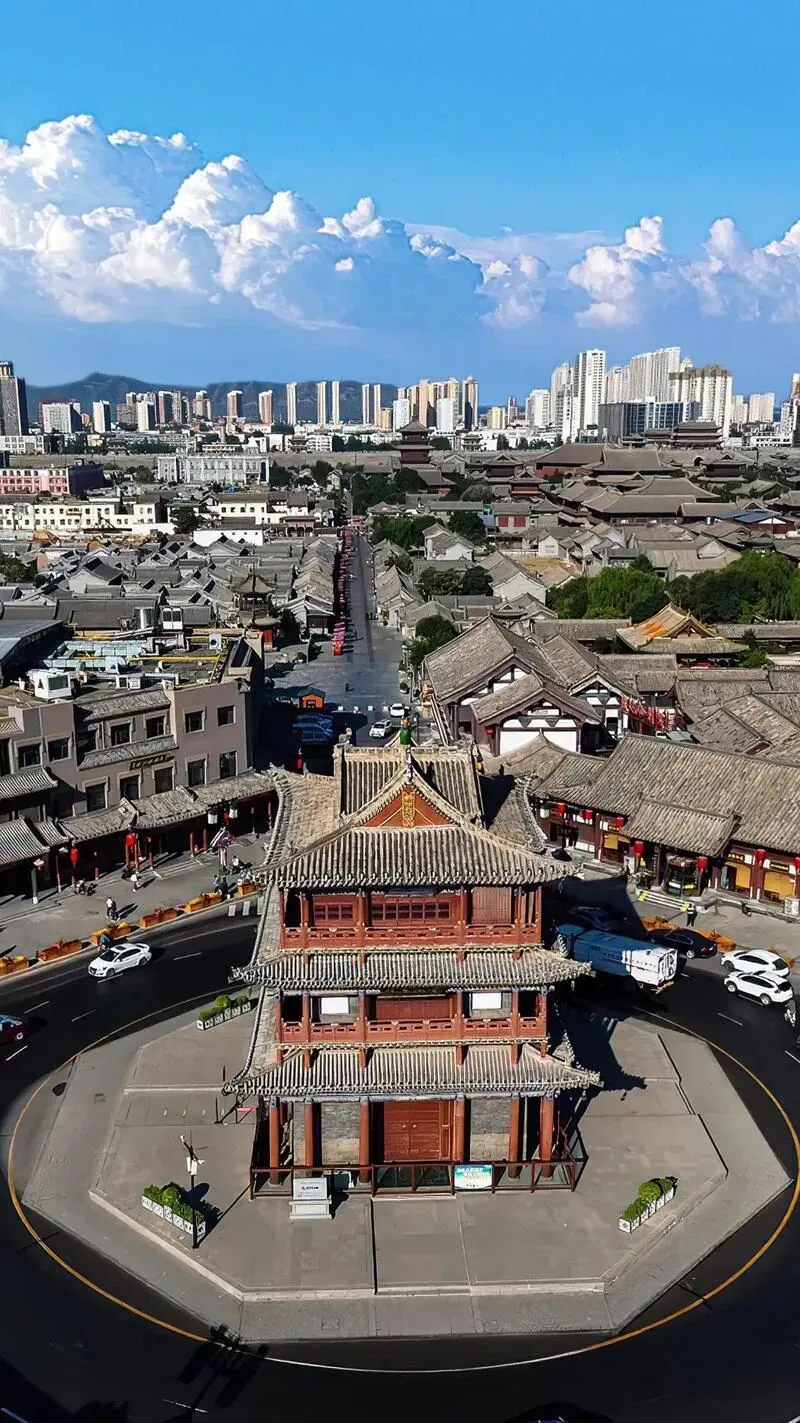 3.大同古城:大同古城主城以城墙围合,外围东、南、北城墙外侧有3座小城(东小城、南小城、北小城)。古城有“四大街、八小巷、七十二条绵绵巷”之说:街巷以十字大街为骨架,东西大街为横轴,南北大街为纵轴,形成古城主干道体系;四隅内由小型街道十字相交叉,又呈现出较大规模的“坊”,形成古城次干道体系;这些“坊”再以小巷纵横分割、分配,坊内小巷交汇处大多数为“丁”字形相互连接,形成古城支路体系。