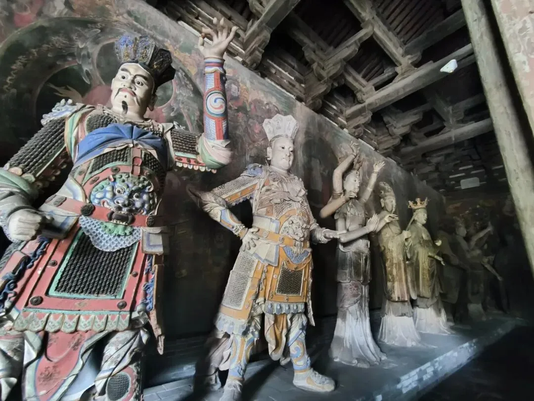 10.善化寺:善化寺(Shanhua Temple),俗称南寺,位于山西省大同市平城区南寺街6号。据庙碑记载:始建于唐开元年间,称开元寺。五代后晋更名大普恩寺。金代圆满和尚主持重修重建。明正统十年(1445年)明英宗赐名善化寺,一直沿用。善化寺坐北朝南,南北长209米,东西宽251.4米,占地面积52543平方米。寺院中轴线布列天王殿(山门)、三圣殿和大雄宝殿,东侧有东配殿、东垛殿,西侧有西配殿、普贤阁及西垛殿。除天王殿(山门)、三圣殿、大雄宝殿和普贤阁为辽金建筑外,其余两侧配殿和钟鼓楼为明清时期建筑。寺内保存金代塑像34尊,清代壁画190平方米。明代塑像9尊,金碑2通,明清重修碑3通。