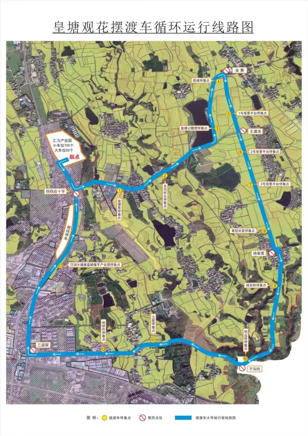 亲爱的市民、游客朋友们: 春风拂面,花开满园。为保障汉台区皇塘水乡景区游览高峰期道路交通安全、畅通、有序,现就景区交通保障及换乘服务相关事项温馨提示如下: 一、交通管制,错峰出行 近期皇塘水乡景区及周边道路人流、车流显著增多。为缓解汉台区各观花路线交通压力,保障通行秩序,将根据实时客流、车流情况,适时采取交通引导或临时管控措施。请广大游客提前规划观花路线,合理安排时间,尽量错峰观花,避开高峰时段、拥堵路段。 二、统一停车,免费换乘 为方便游客停车,我们在汇力产业园等地设有大型免费停车场,请自驾游客将车辆统一停放至指定停车场,请勿驾车前往核心景区,以免因拥堵耽误行程。 三、摆渡接驳,便捷畅游 从汇力产业园区出发,我们专门开通了皇塘水乡景区观光摆渡车。线路全程11.8公里,共设15个特色停靠站点,实行单向行驶、循环运行。票价2元通票,一次购票,当日有效,可无限次乘坐,方便游客轻松抵达各打卡点,省去找车位、长距离步行的烦恼,让旅途更从容惬意。