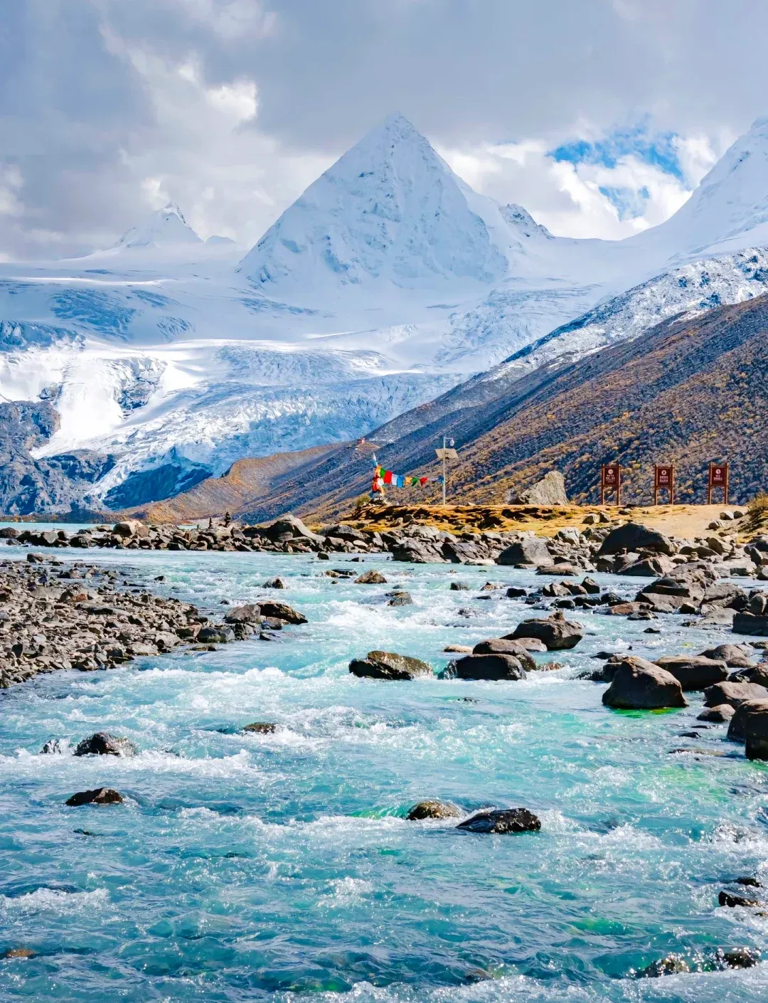 溪水从雪山脚下冲下来,石头闪着亮光。有人说它是“原始九寨”,其实更野更真。