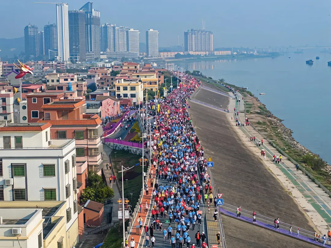 脚步为媒,凝聚城市温情。“美丽佛山 一路向前”的口号响彻全程,老人与孩童携手、家庭与企业同行、志愿者与守护者并肩,陌生人因步履相近,市民因城市相亲。在高明线的赛道上,温暖从未缺席:本土商家自发设补给点,送上凉茶点心暖人心;数百名志愿者全程坚守,用微笑护航征程;公安干警、医护人员严阵以待,筑牢安全防线;沿途市民自发呐喊助威,声声鼓劲暖征途。这些细碎的闪光瞬间,汇聚成徒步里最动人的高明专属记忆。
