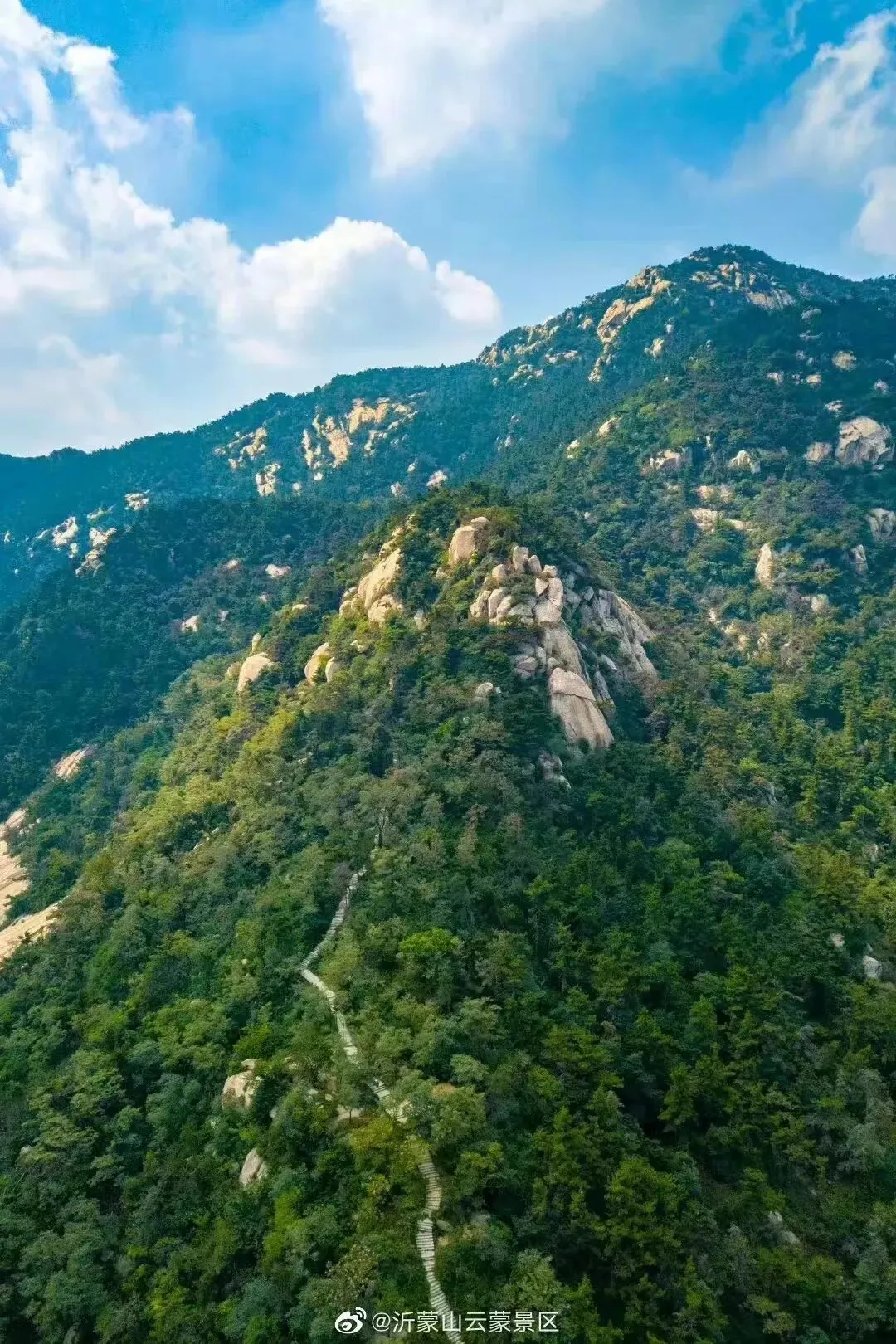 蒙山云蒙景区位于蒙山之阴,是沂蒙山旅游区核心景区,国家AAAAA级旅游景区;风景秀丽,自然景观和人文景观十分丰富,名胜古迹颇多。蒙山北坡森林面积达30余万亩,素有百里林海之称。云蒙景区森林植被覆盖率达98%以上,负氧离子含量居全国之首,被誉为“世界级天然氧吧”,蒙山空气又称“极氧”。