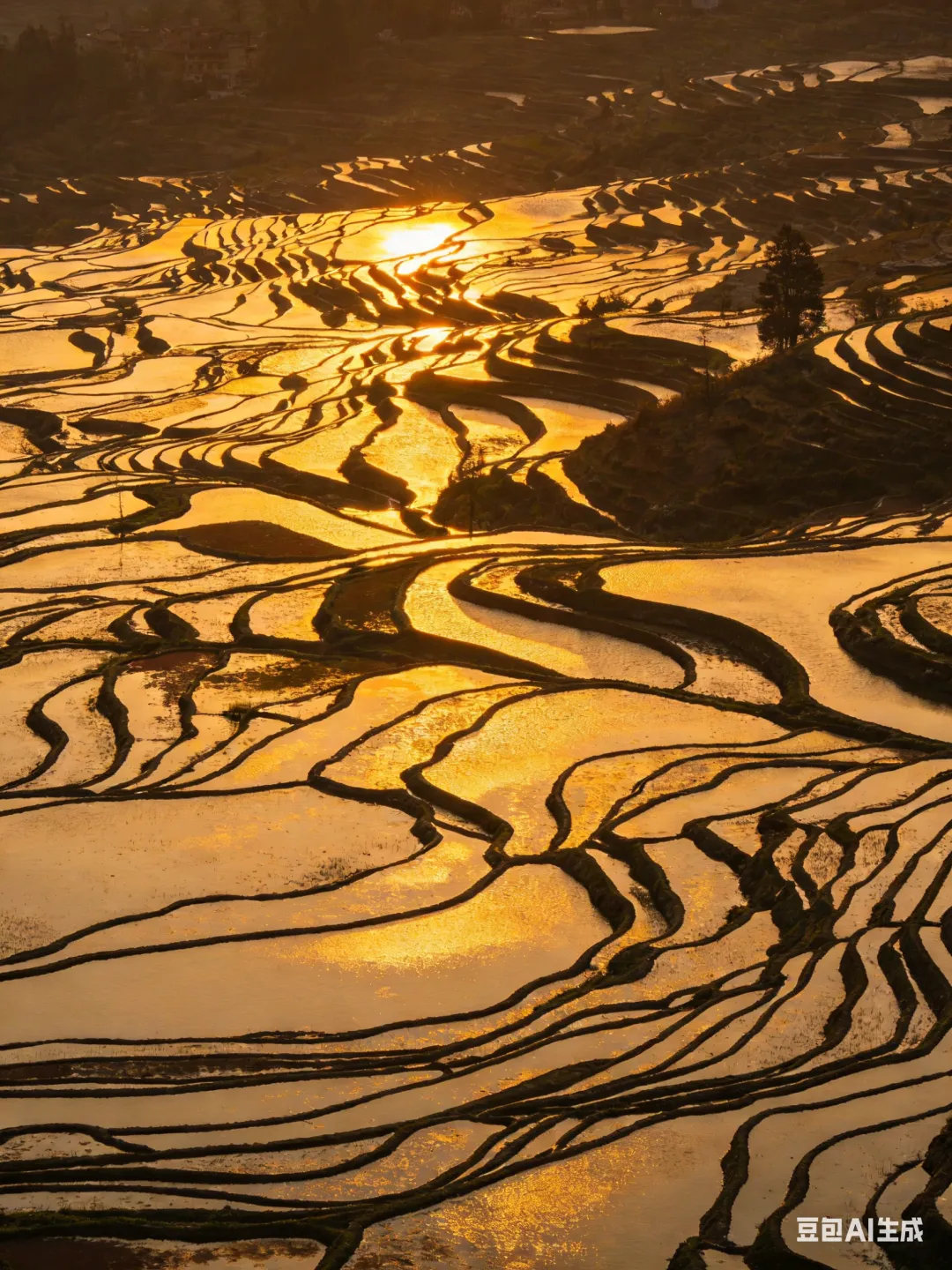 哈尼族人用千年时光,在哀牢山雕刻出了世界最美的梯田。清晨,云雾漫过田埂,水面如镜,倒映着天光与山峦;傍晚,夕阳把梯田染成金红、橙紫,层层叠叠的曲线像大地的指纹,从山脚蔓延至云端。这里是摄影人的天堂,也是农耕文明的活化石 —— 每一块田埂都藏着哈尼人的智慧,每一缕雾气都裹着 “森林 — 村寨 — 梯田 — 水系” 的生态密码。