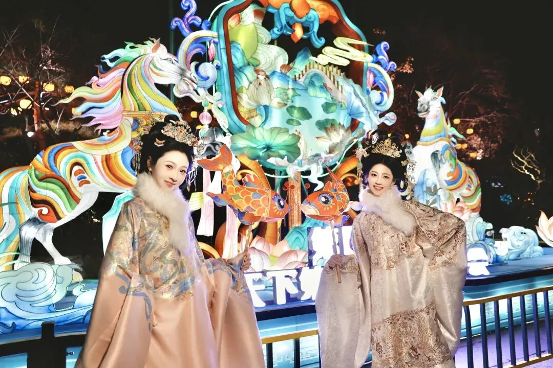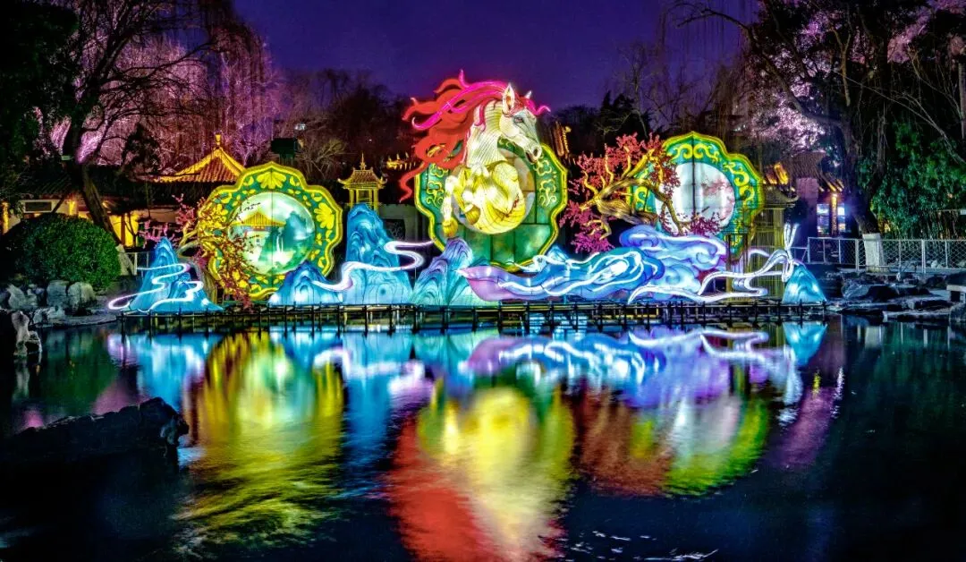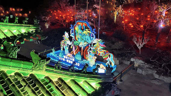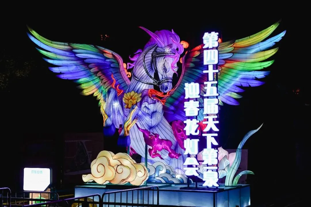 作为本届灯会的核心展区,趵突泉景区分为《南门贺岁·悦马泉城》与《文脉流光·诗咏名泉》两大篇章,深度挖掘济南历史人文与泉水文化,打造兼具民俗气息与文人意趣的赏灯核心区。
