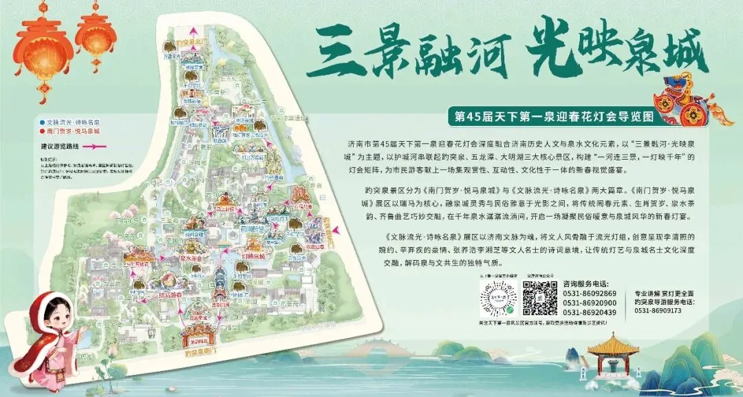 灯会期间,为确保游客游览安全有序、服务优质高效,趵突泉景区全力做好环境保洁、秩序维护、游客引导、设施保障和安全巡查等工作,优化服务细节,筑牢安全防线。