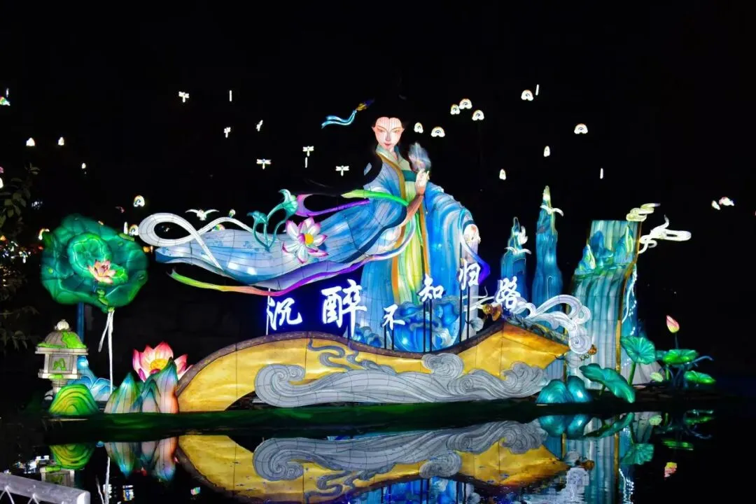 《文脉流光·诗咏名泉》展区以济南文脉为魂,将文人风骨融于流光灯组,创意呈现李清照的婉约、辛弃疾的豪情以及张养浩、李湘芝等文人名士的诗词意境,让传统灯艺与泉城名士文化深度交融,解码泉与文共生的独特气质。