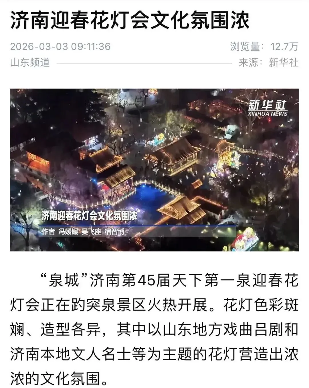 这场以灯为媒的文化盛宴,不仅让“不到趵突泉观灯,不算过年”的泉城记忆愈发深刻,更以匠心与创意,为济南文旅写下了传统与潮流融合的精彩答卷,让千年泉城的文化魅力在灯火中绽放新光彩。