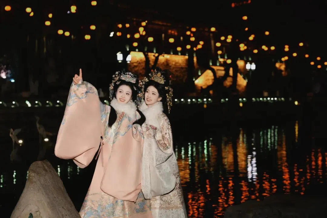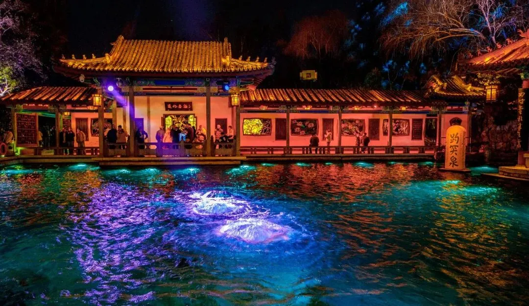 摩肩接踵的游客中,既有全家出游的温馨身影,也有身着汉服的年轻打卡者。灯火与泉水相映成趣,勾勒出“灯在水里闪,泉在灯中流”的绝美画卷。