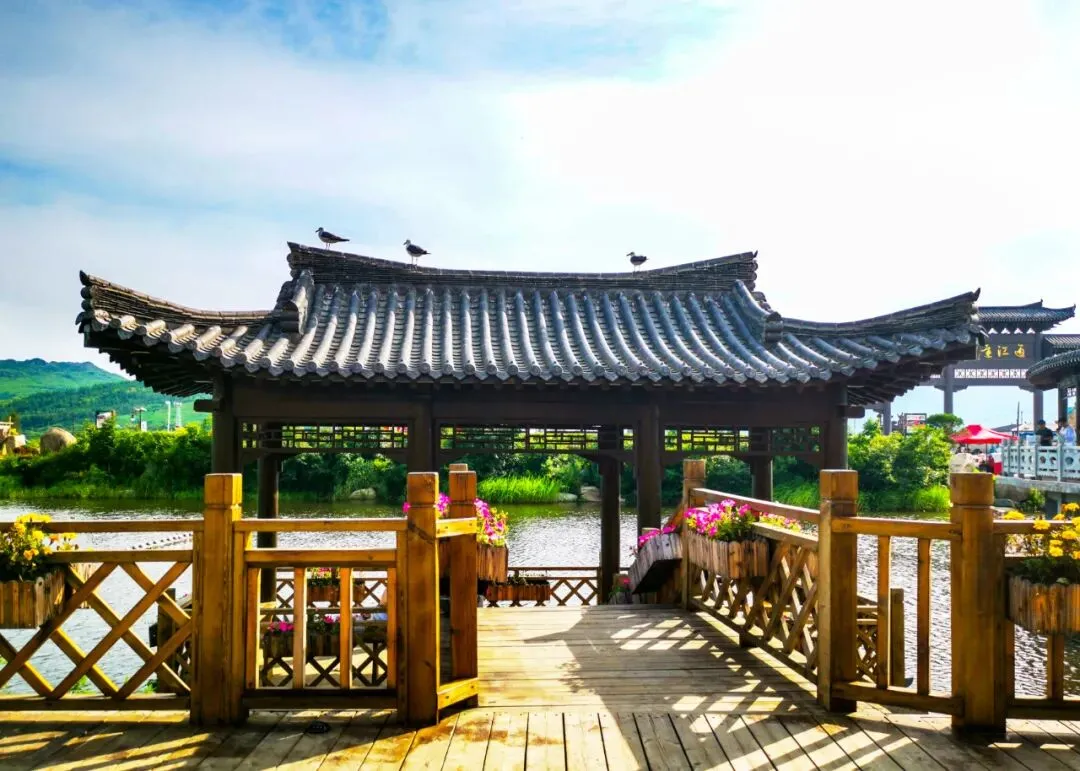 走进防川村,目之所及,一座座朝鲜族传统民居青瓦白墙,飞檐翘角,古韵十足。沿着村路漫步,可以看到每栋朝鲜族民居院内都郁郁葱葱,院内种植的茄子、黄瓜、西红柿、辣椒等蔬菜长势喜人,盛开的各色鲜花争奇斗艳,为这灿烂的秋日平添了生机与情趣。草木结构的凉亭、古老的石磨、民族传统大铁锅、泥瓦稻草砌成的墙垣……各种景观小品散布在村落中,可谓十步一景、五步一画。
