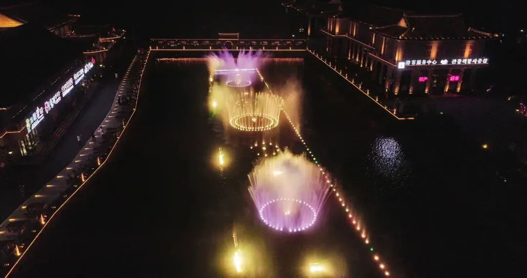 除了与众不同的精致美景,最令游客感到惊喜的还属防川村的旅游体验项目。夜幕降临,游客们集聚在村里的音乐广场,在迷人的夜色中欣赏音乐喷泉。音乐喷泉将美妙动听的歌曲与各种造型相结合,并配以水幕电影和激光秀,给游客带来视觉、听觉上的极致享受。音乐喷泉还没结束,广场中央已燃起篝火。游客们自发拉起手来,围着篝火载歌载舞,尽情释放一天的疲惫。