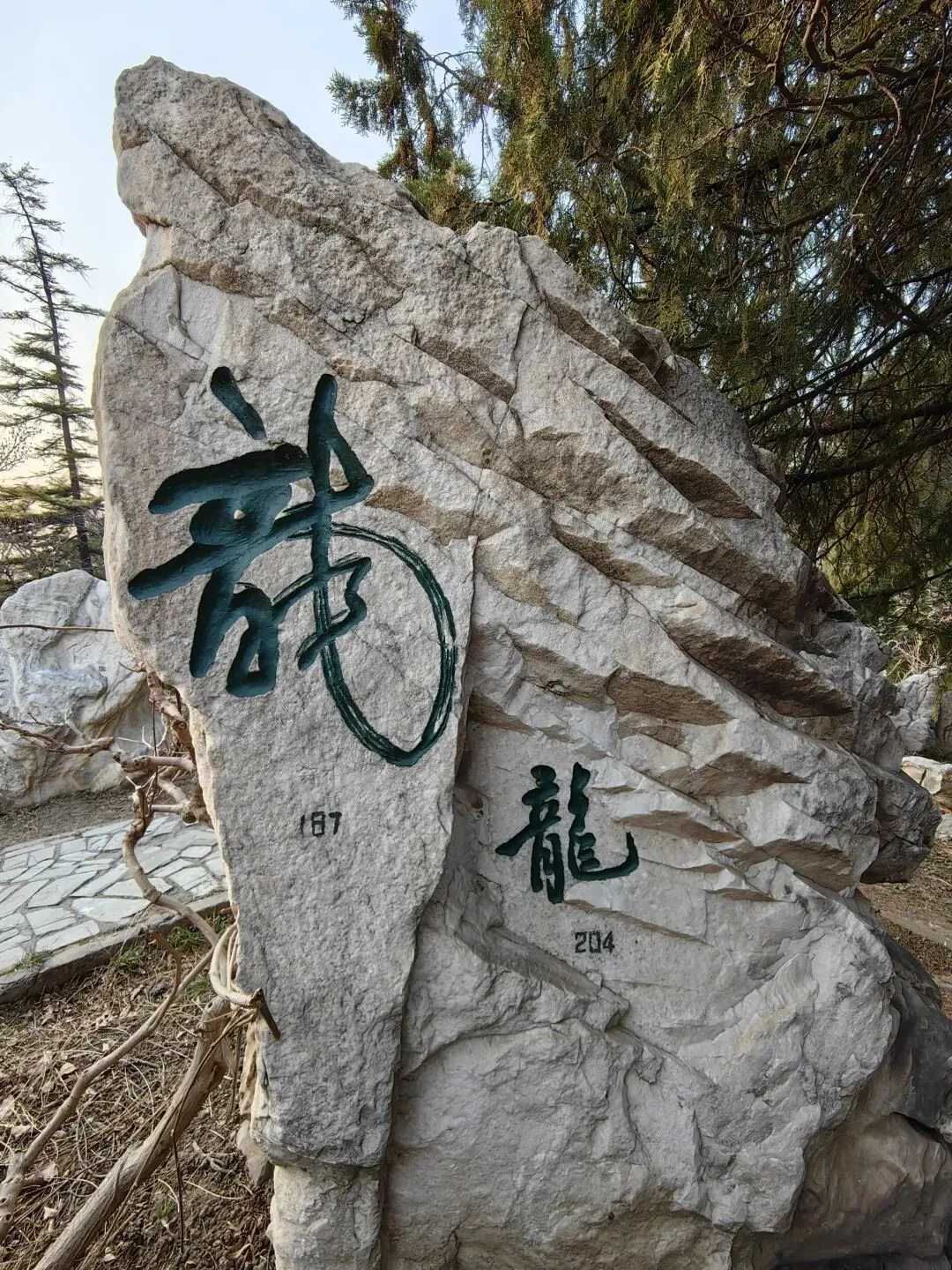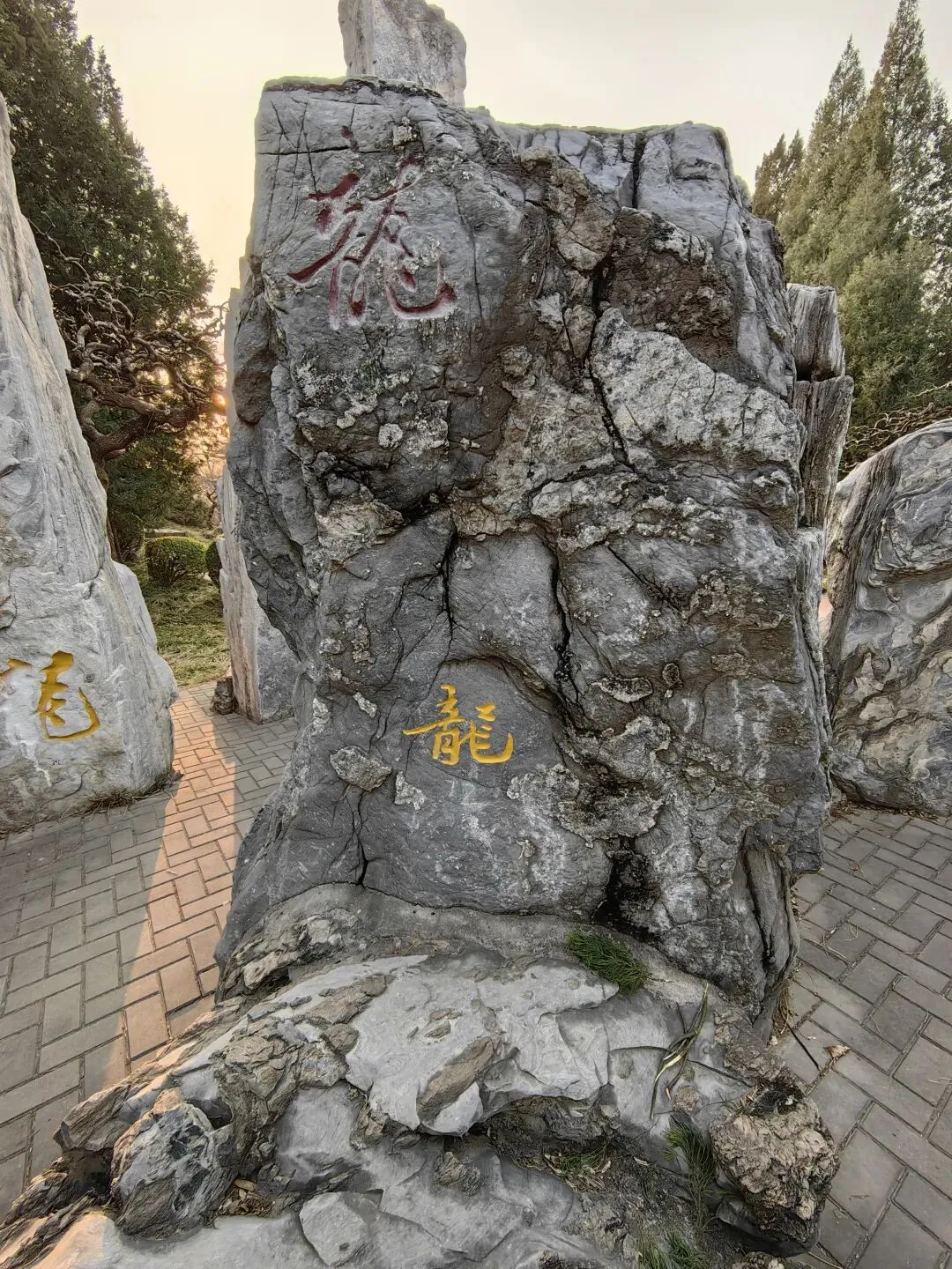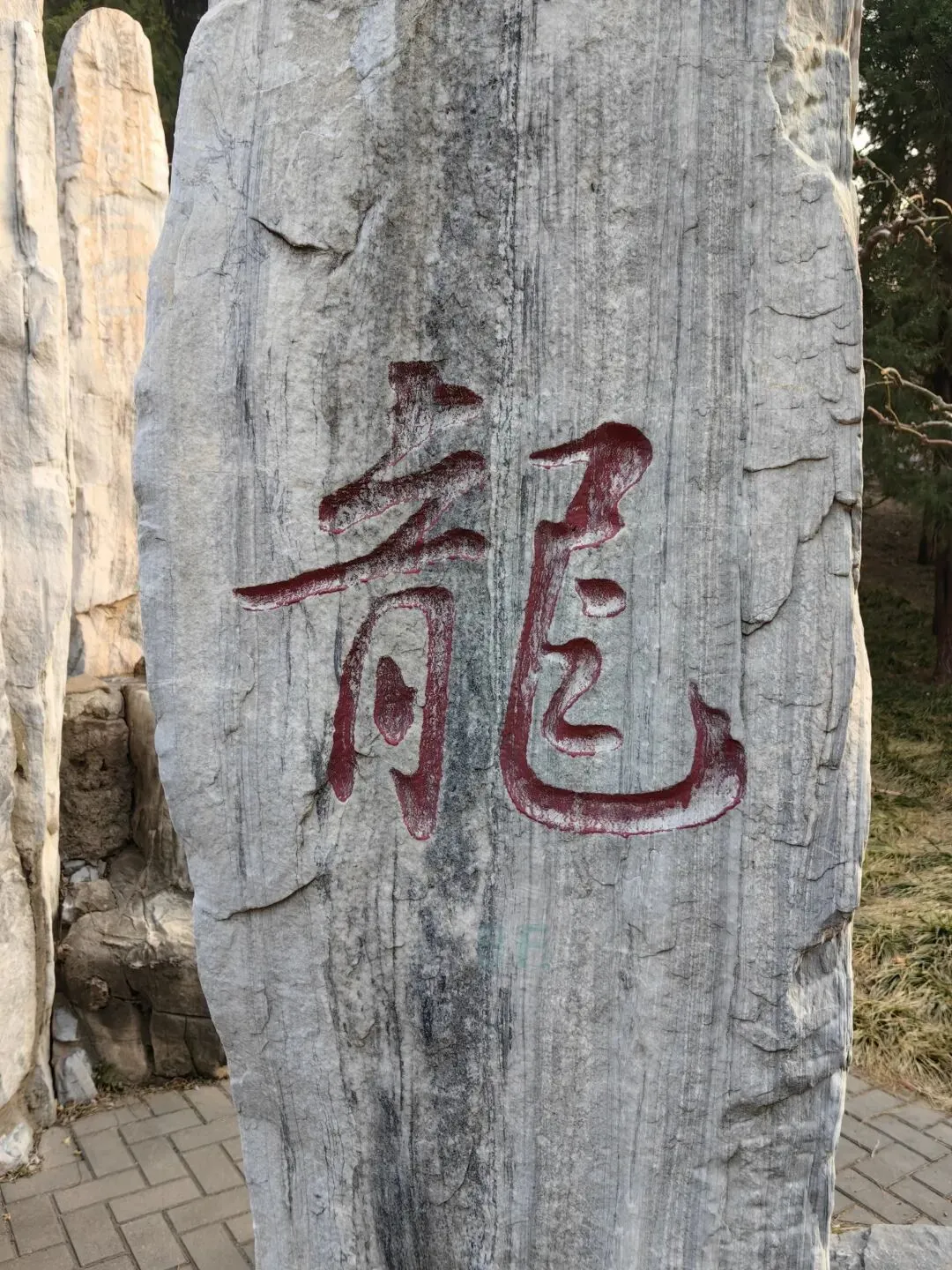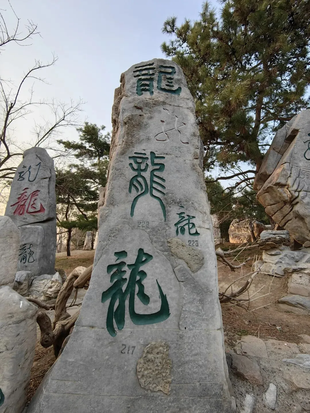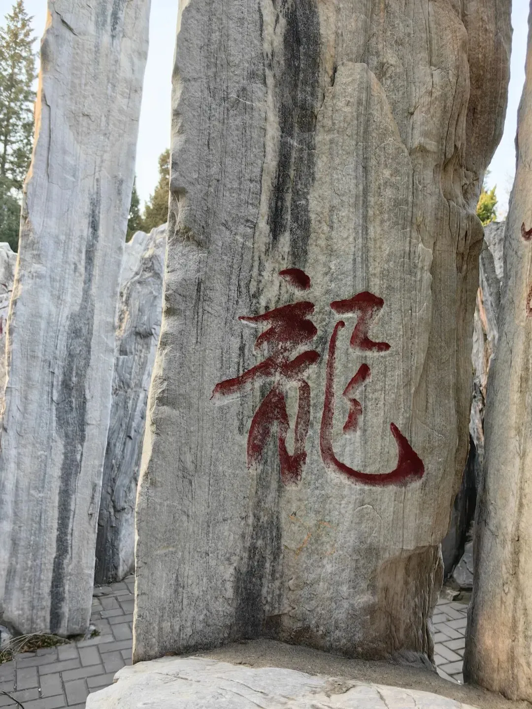 今天重点看的是龙字石林景区。景区集中展示中国书法史上‘龙’字及龙形的演变,共汇集甲骨文、秦篆、汉隶至明清及现代书法名家的229种‘龙’字石刻,涵盖篆、隶、楷、行、草等多种书体,也展现了中国龙图腾的形态衍变。石刻布局依“晚晴山”势而建。由小路分成南北两部分。