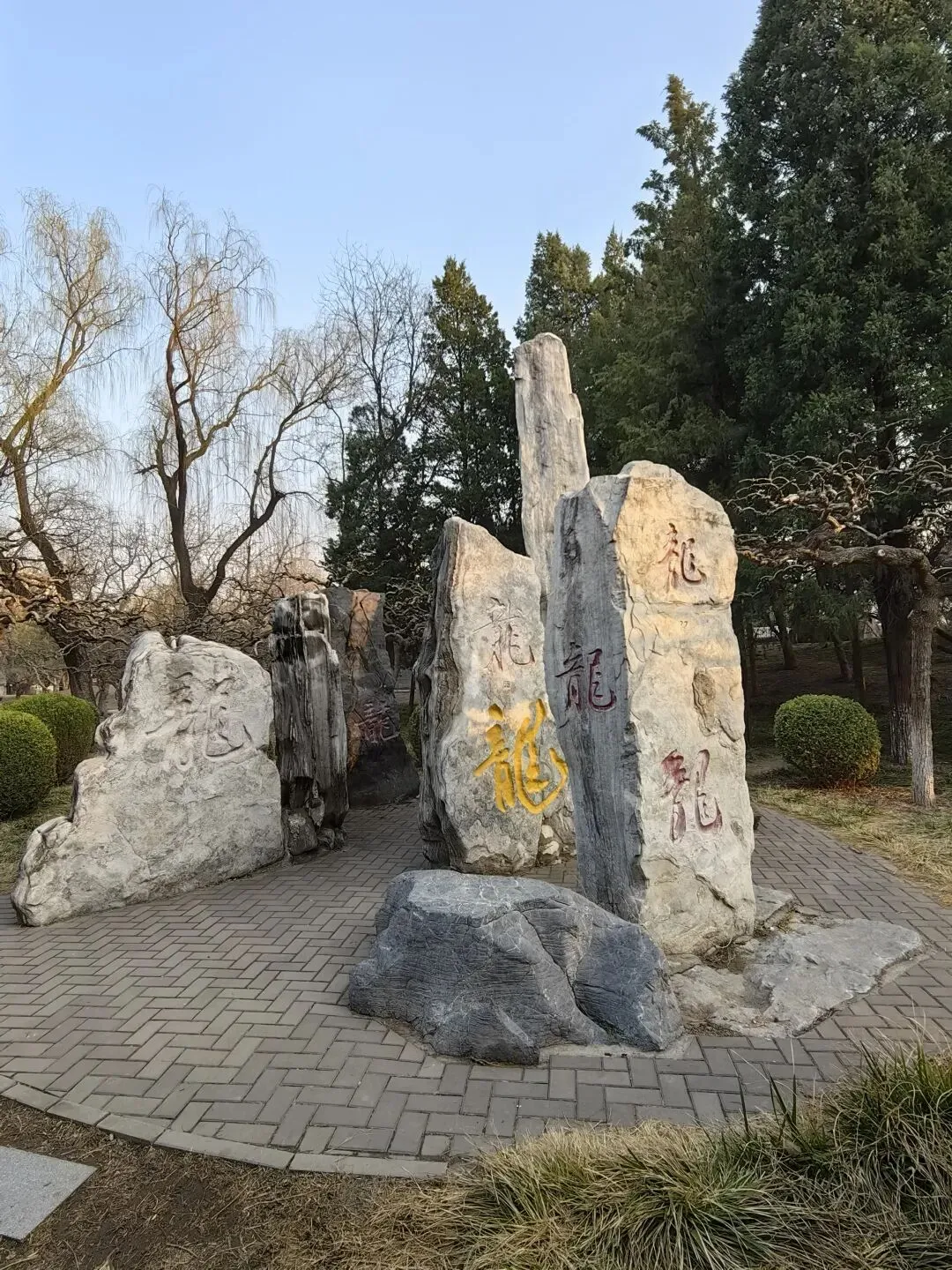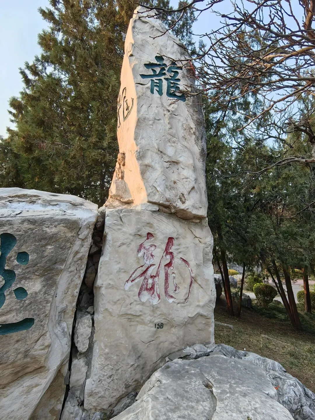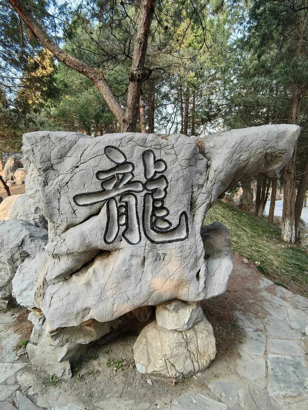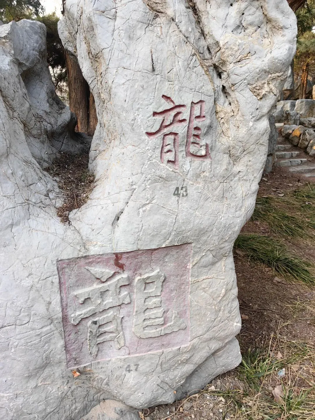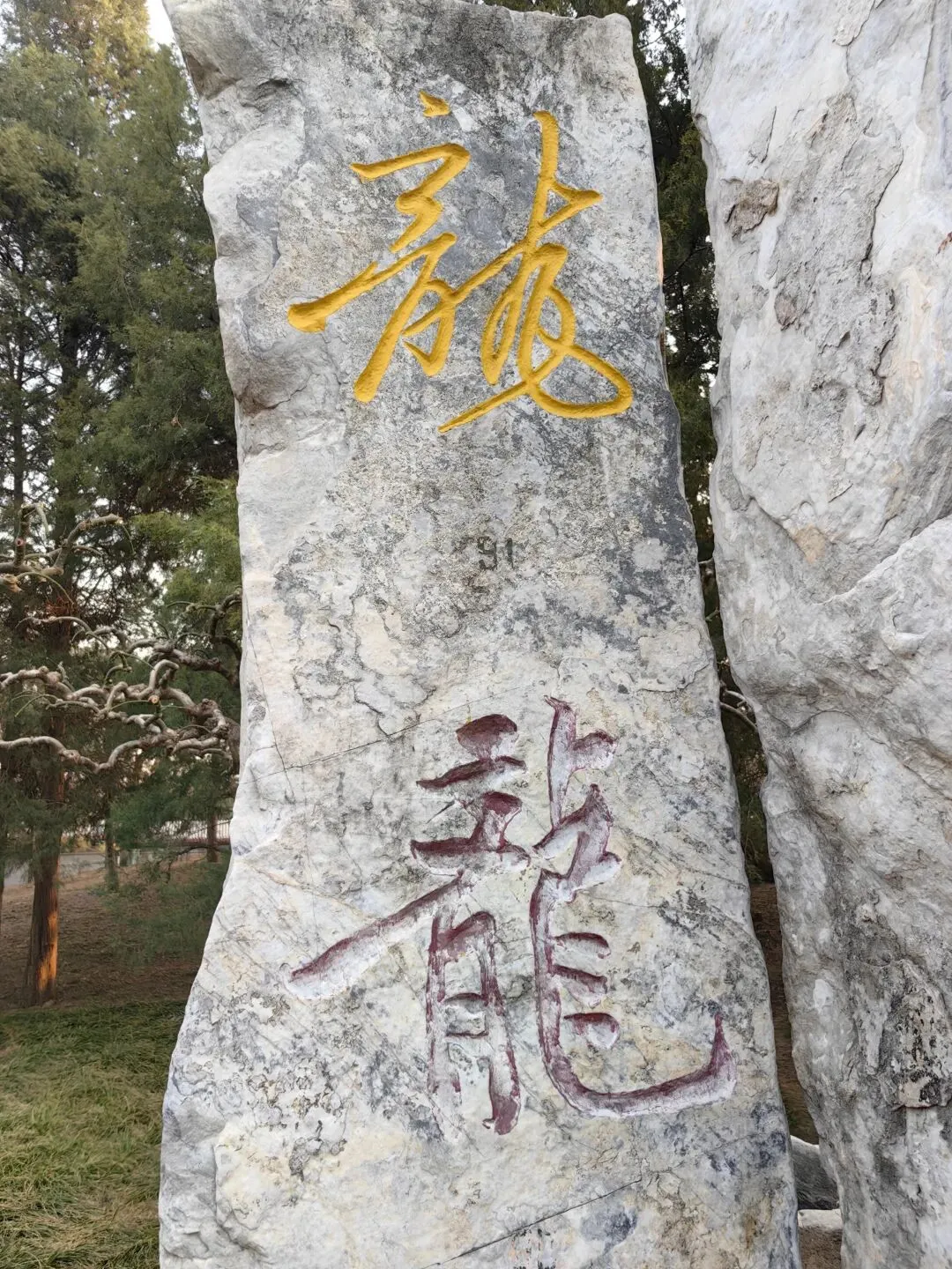 今天重点看的是龙字石林景区。景区集中展示中国书法史上‘龙’字及龙形的演变,共汇集甲骨文、秦篆、汉隶至明清及现代书法名家的229种‘龙’字石刻,涵盖篆、隶、楷、行、草等多种书体,也展现了中国龙图腾的形态衍变。石刻布局依“晚晴山”势而建。由小路分成南北两部分。