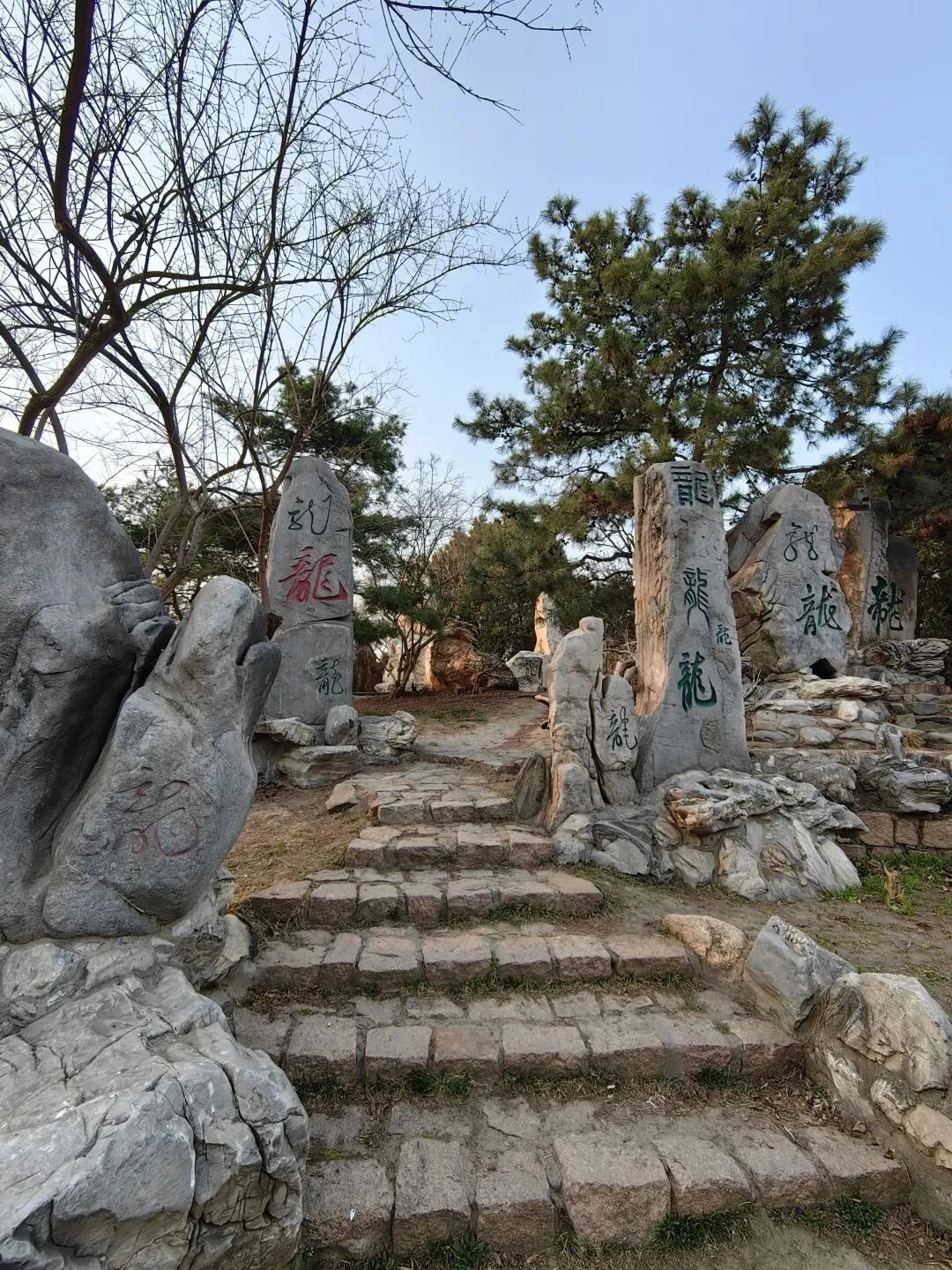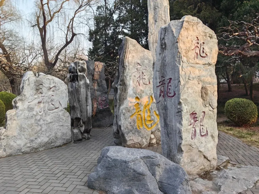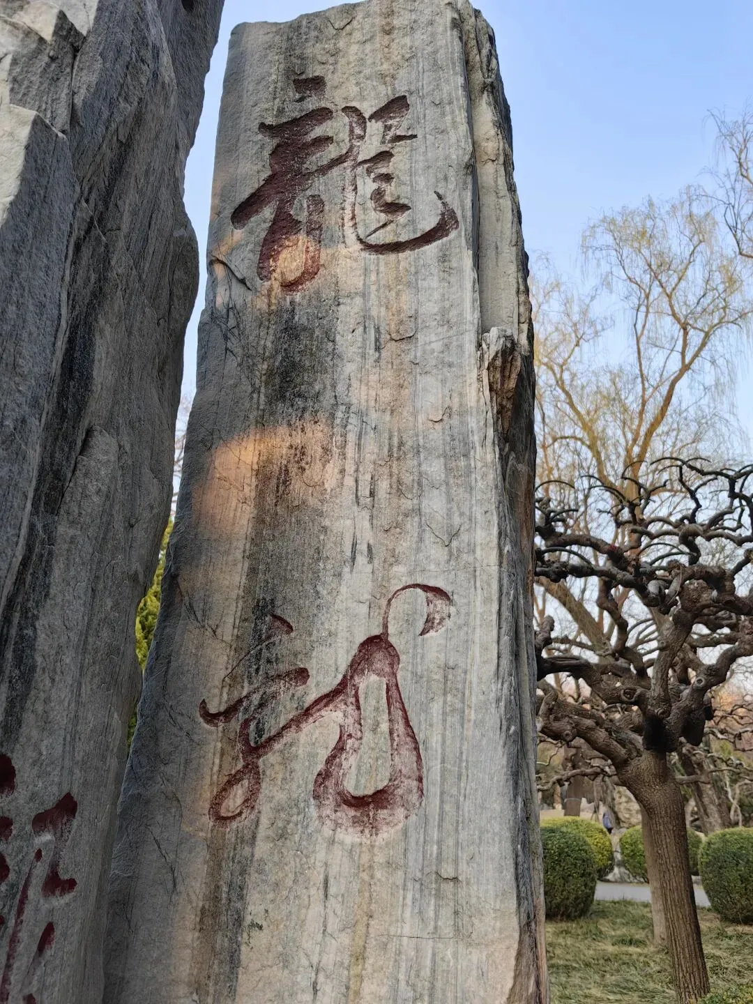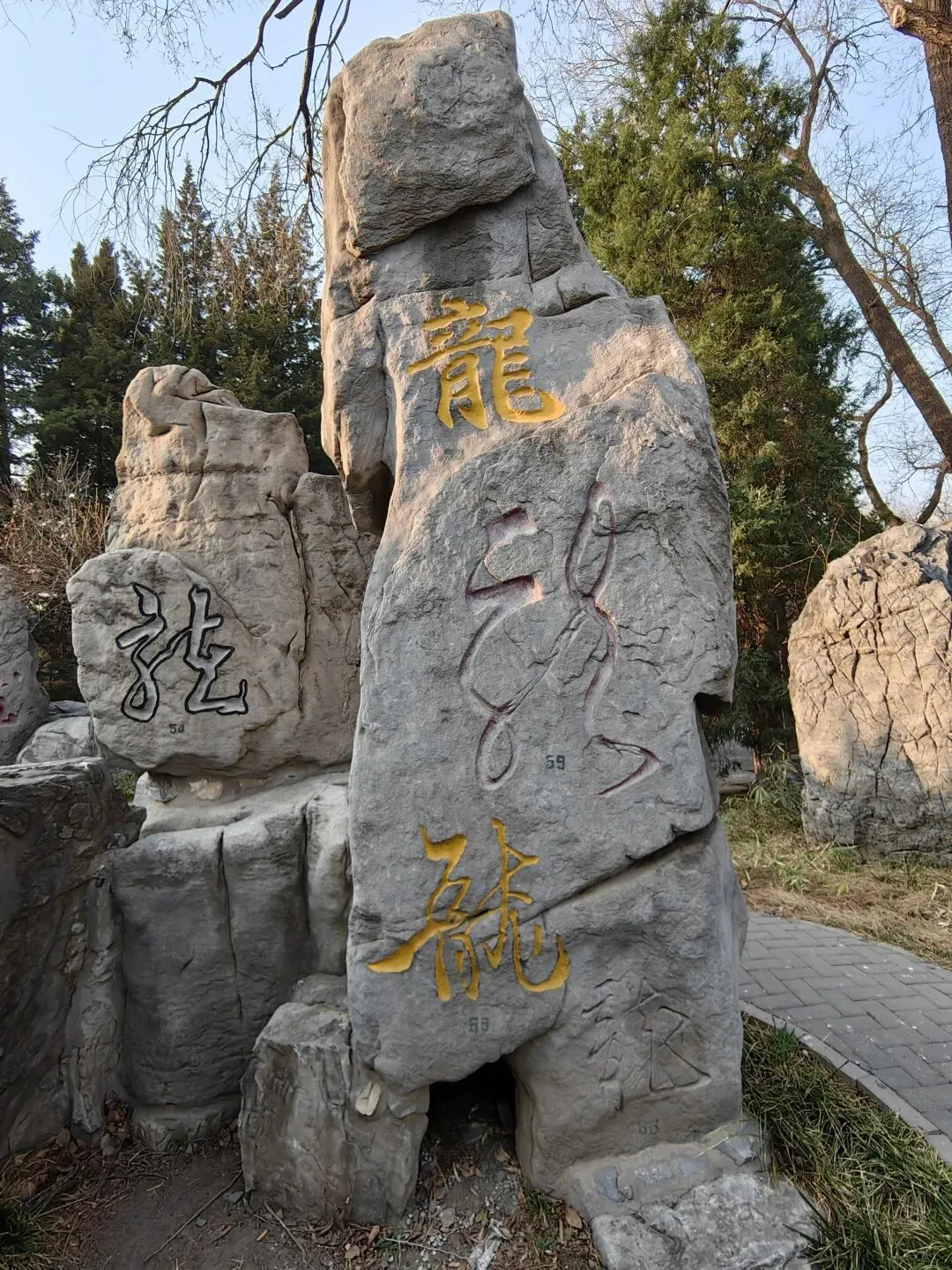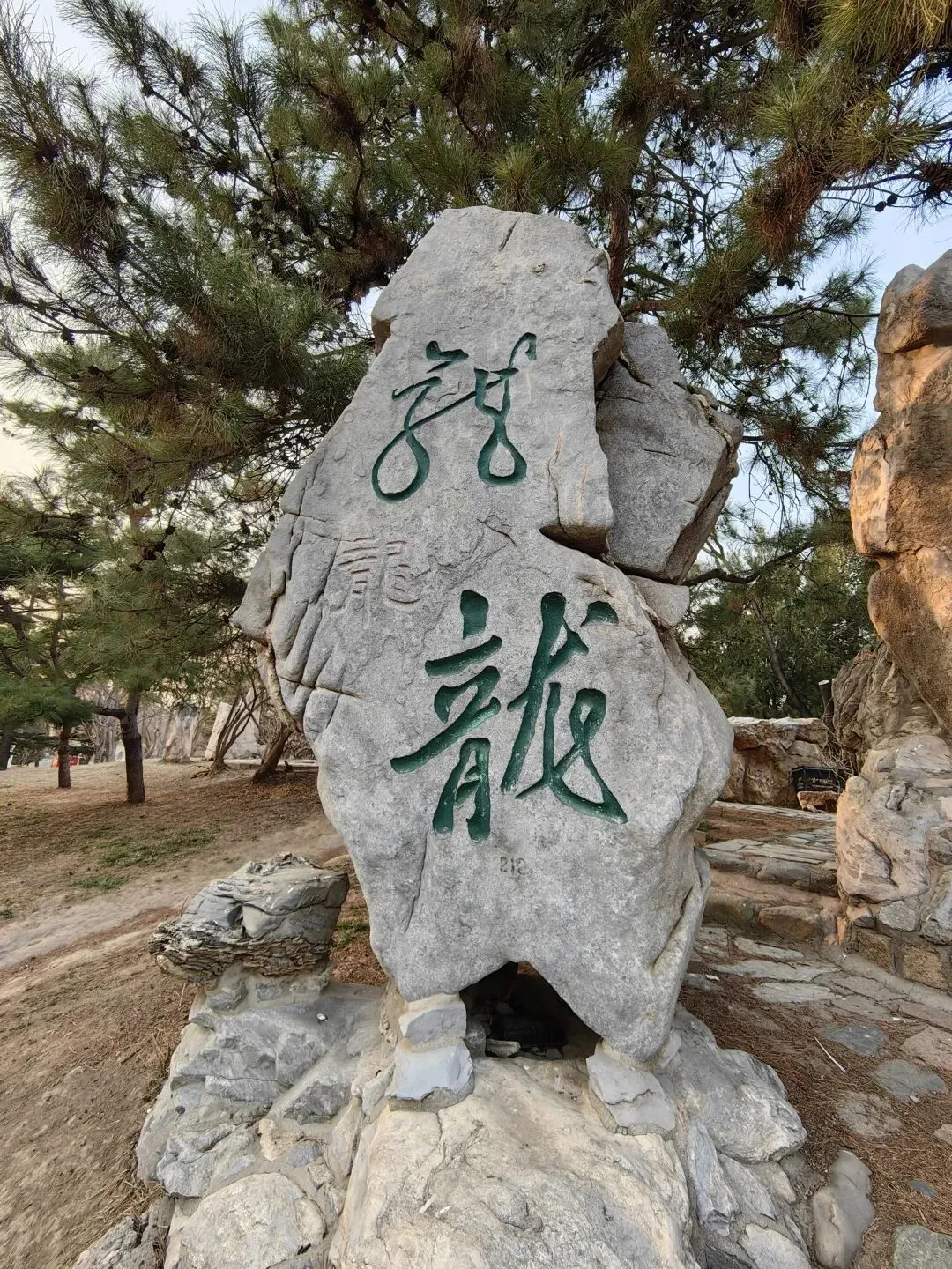 今天重点看的是龙字石林景区。景区集中展示中国书法史上‘龙’字及龙形的演变,共汇集甲骨文、秦篆、汉隶至明清及现代书法名家的229种‘龙’字石刻,涵盖篆、隶、楷、行、草等多种书体,也展现了中国龙图腾的形态衍变。石刻布局依“晚晴山”势而建。由小路分成南北两部分。