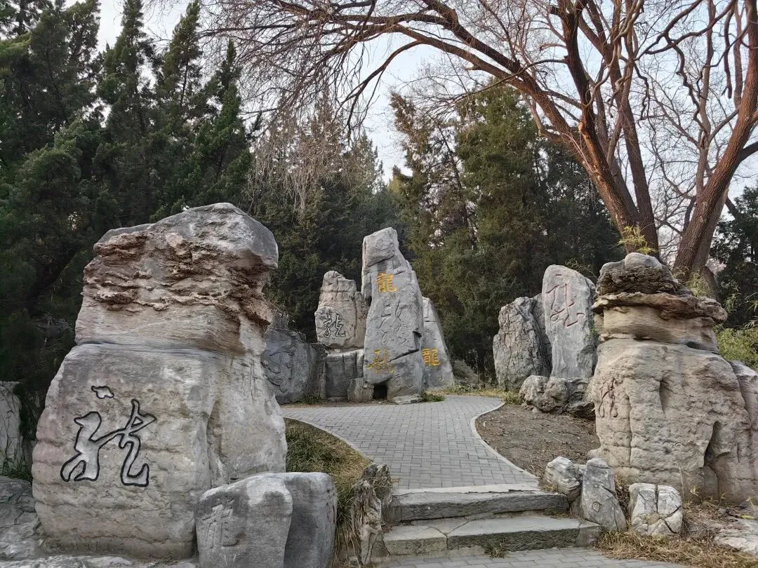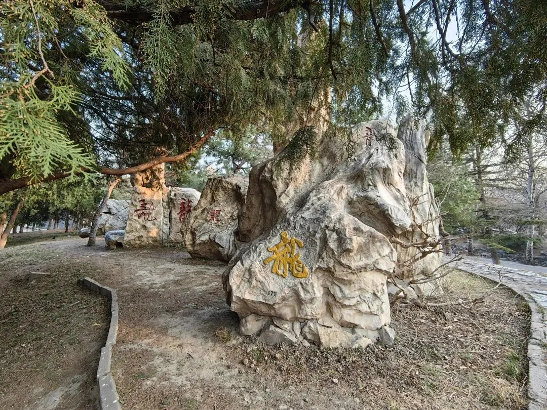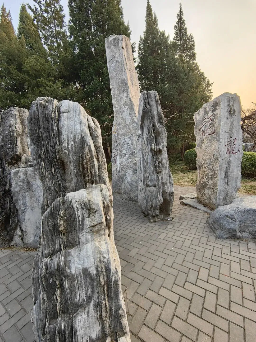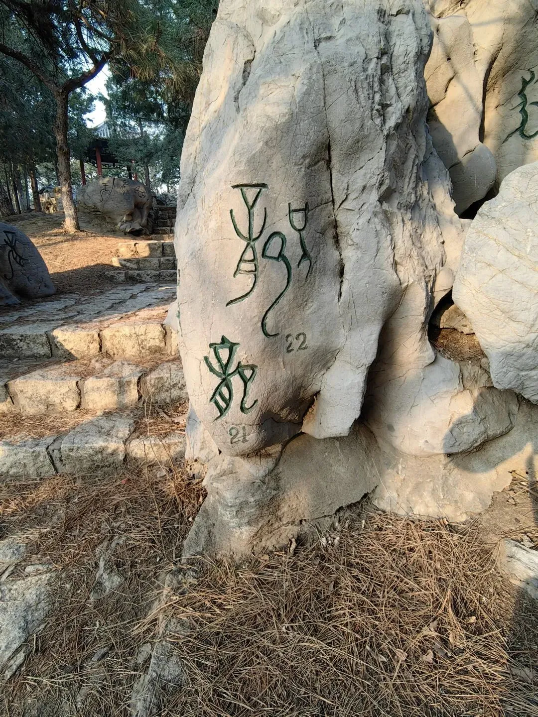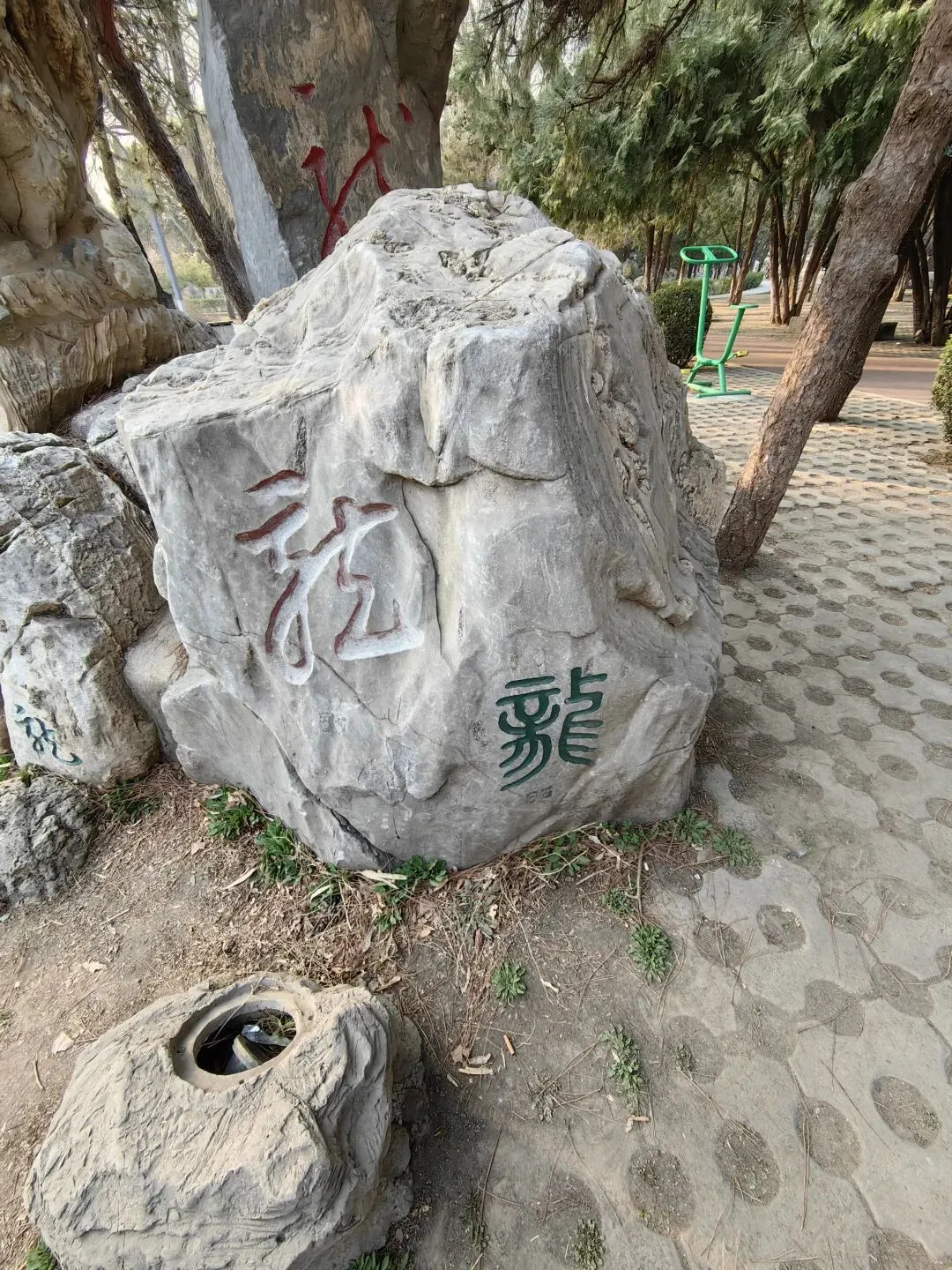 今天重点看的是龙字石林景区。景区集中展示中国书法史上‘龙’字及龙形的演变,共汇集甲骨文、秦篆、汉隶至明清及现代书法名家的229种‘龙’字石刻,涵盖篆、隶、楷、行、草等多种书体,也展现了中国龙图腾的形态衍变。石刻布局依“晚晴山”势而建。由小路分成南北两部分。