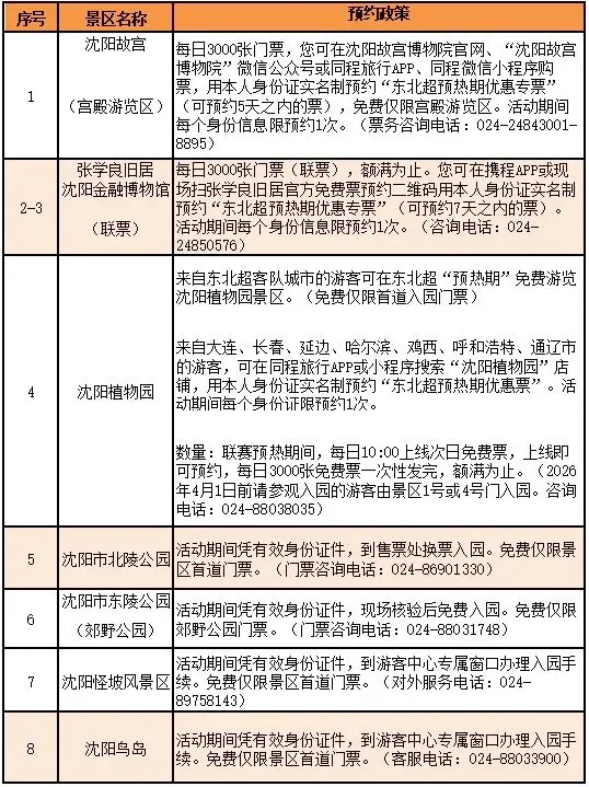 5月“东北超”足球联赛战鼓即将擂响,大东北足球热情将全面点燃!作为联赛开幕式主场,沈阳带着满格热情提前宠客——3月11日至4月30日,大连、长春、延边、哈尔滨、鸡西、呼和浩特、通辽的老铁们,凭本人有效身份证件,就能免费畅游沈阳八大景区!这波诚意福利拉满,邀请各兄弟城市朋友们共赴这场春天的约会!