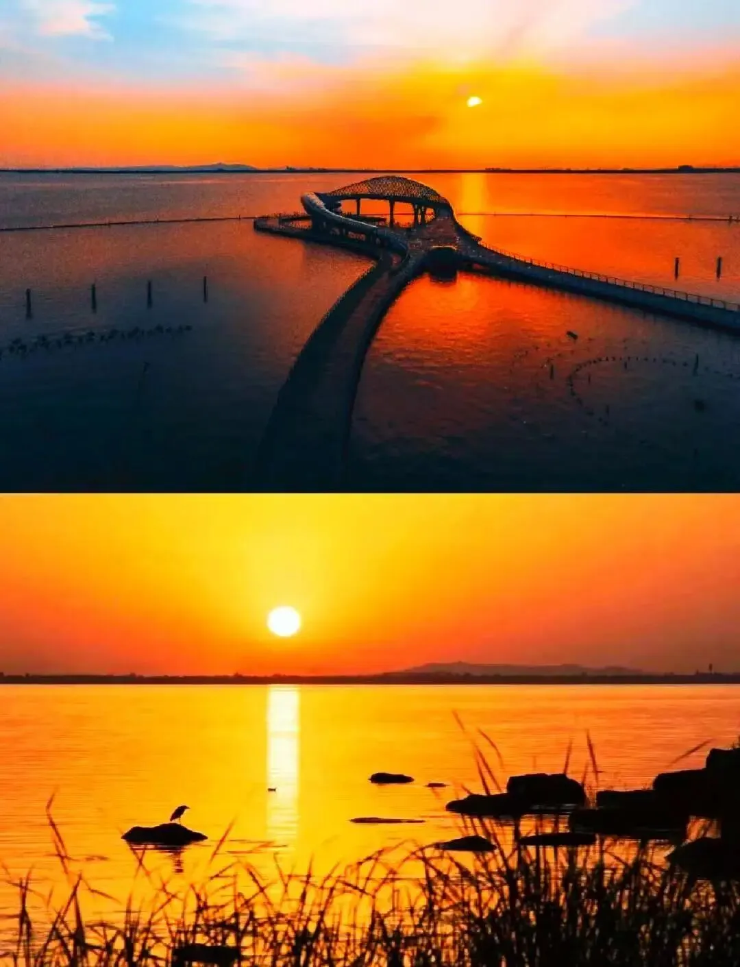 从湖岸延伸200多米至湖中的阅湖台,更是整个苏州超火的“橘子海”日落观赏地,美不胜收。