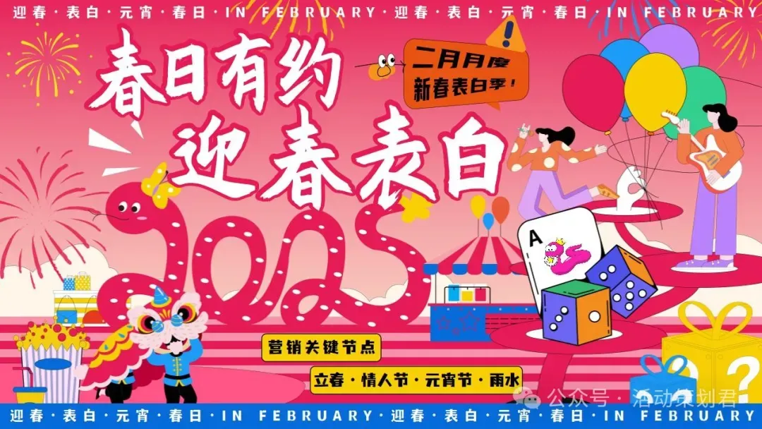 【活动类型】 关键词摘要: 嘉年华、生活节、音乐节、市集集市、文化节、艺术节、美食街、游园会、造物节、音乐节、电影节、啤酒节、电音节、美陈、暖场活动、庆典仪式、晚宴晚会、展览展会、品牌推广、团建拓展、线上营销、线下推广、运动赛事、策略提案、整合推广、商业计划书、年会尾牙、PPT模板、客户答谢会、品鉴会、开盘仪式、营销中心开放、美食街、年货节、交付仪式、研究报告、开街仪式、展厅开放、示范区开放、路演巡展、售楼处开放、演唱会、车展、奠基仪式、样板间开放、节日活动、发布会、新车发布会 【2025热门标签】 一月关键节点:元旦、腊八月、小年、除夕 二月关键节点:春节、情人节、元宵节、冬奥会 三月关键节点:学雷锋纪念日、妇女节、植树节 四月关键节点:愚人节、清明节、世界航天日、谷雨节气、世界读书日 五月关键节点:劳动节、五四青年节、立夏、母亲节、520 六月关键节点:儿童节、端午节、芒种、高考、夏至、618、父亲节 七月关键节点:小暑、暑假 八月关键节点:七夕节、立秋、处暑、中元节 九月关键节点:开学日、中秋节、教师节、秋风 十月关键节点:国庆节、重阳节、霜降、万圣节 十一月关键节点:立冬、双十一、感恩节 十二月关键节点:年末、双十二、冬