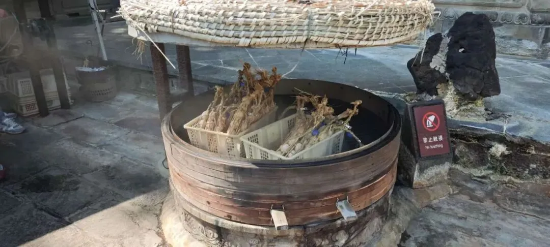 三、以下关于温泉鸡蛋的专门贴士: 1、进入景区停车场后到处都是卖鸡蛋的阿姨,五元四颗,稻草包装,放在包里就可以,基本不会碎,到大滚锅现场再买也就十元四颗,区别不大,从山下带上来的鸡蛋景区免费帮忙蒸熟,热海大滚锅右手边有个小亭子交给工作人员,领取一个号牌,等大约半个小时就可以凭号牌领取蒸熟的鸡蛋了。