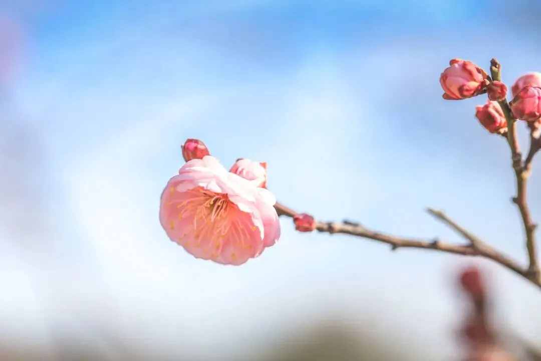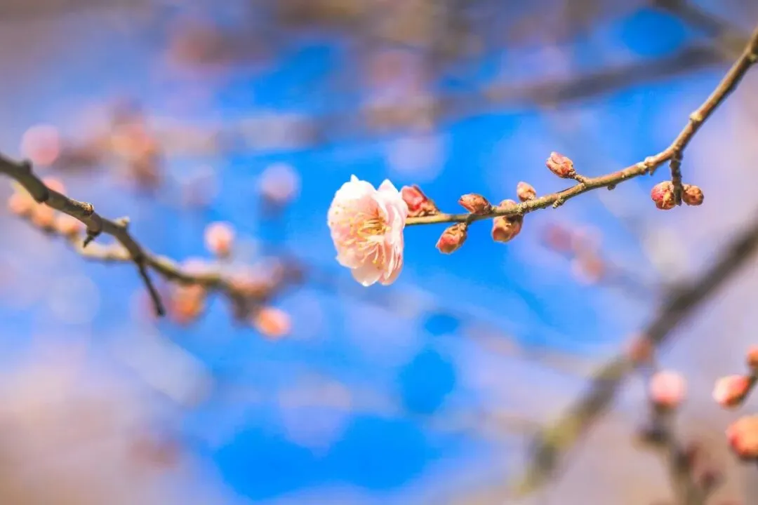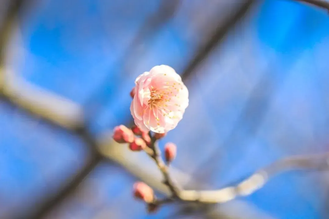 辰山植物园中少量早花品种已悄然绽蕊,疏影横斜处,浅粉轻红点缀枝头,像是春信写在天寒地冻里的诗行。微风过处,暗香浮动,隐约透出一丝清甜、一缕生机,悄悄漫过仍覆着霜气的石径。