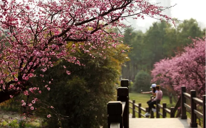 园内现有梅花30000多株,涵盖宫粉、朱砂等60多个品种,主要分布在梅溪香岭、梅影曲径、梅宫探梅。2月中下旬达到鼎盛时,可登梅花亭赏 “池水倒窥疏影动” 的美景。