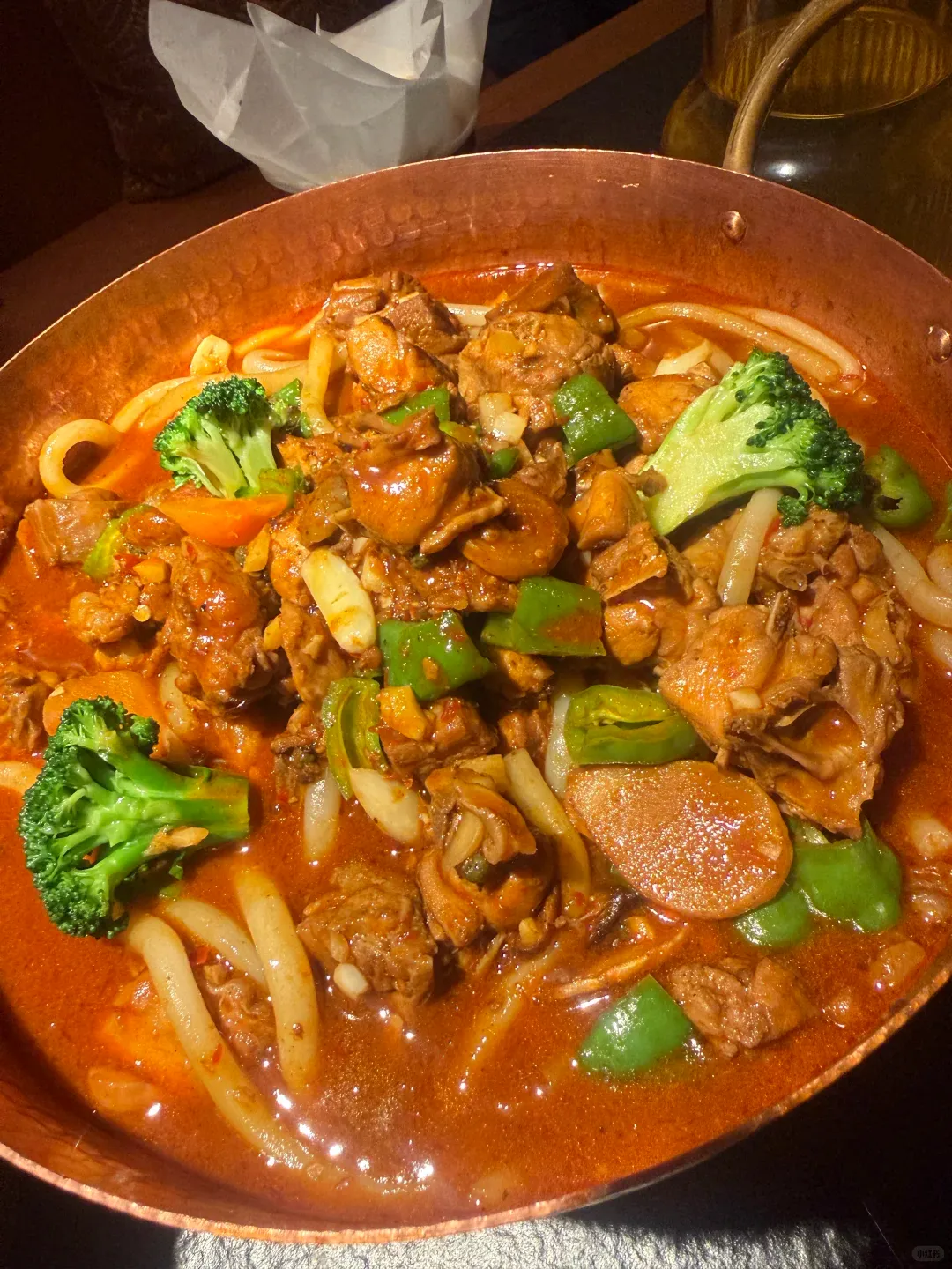 2- 大盘鸡:沙湾大盘鸡是经典,土豆软糯、鸡肉入味,最后拌上皮带面,碳水快乐拉满。