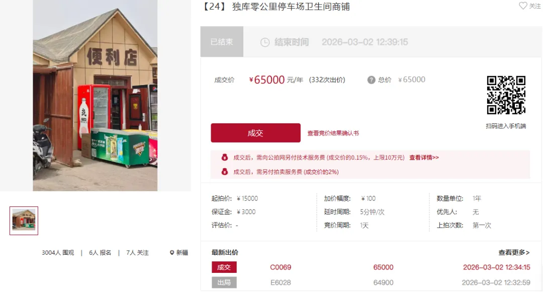 公拍数报 | 景区租赁权溢价333%成交,独库公路商铺引365轮激烈竞价