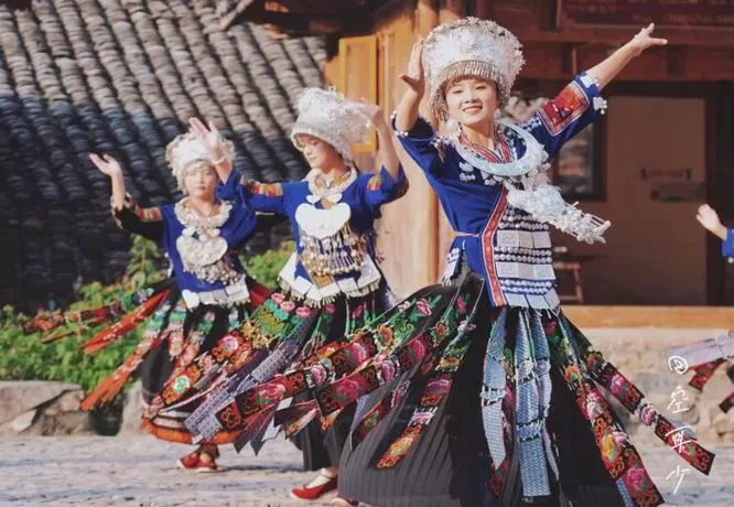 南花苗寨离凯里市区大概三十公里,这个寨子最大的看点是它的梯田和传统的苗族服饰,南花的苗族姑娘穿的是百褶裙,那种裙子的褶皱是真的要一条一条手工压出来的,一条裙子要压几百上千个褶子,这种手艺现在已经很少有人会了。南花苗寨的特点是它把传统技艺和日常生活融合得特别自然,你去村民家里做客,看到挂在墙上的盛装不是摆设,是过节的时候真的会穿出来的。